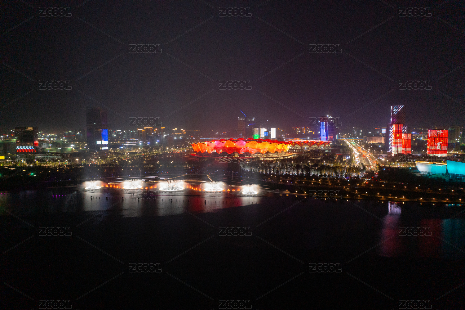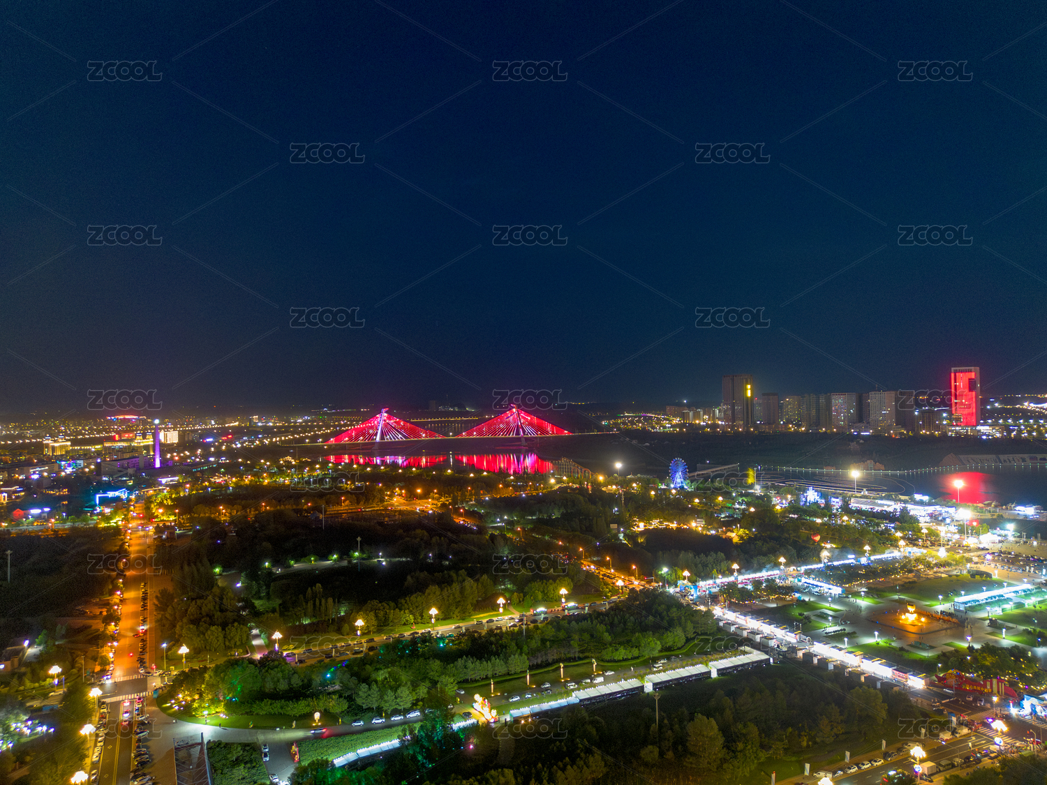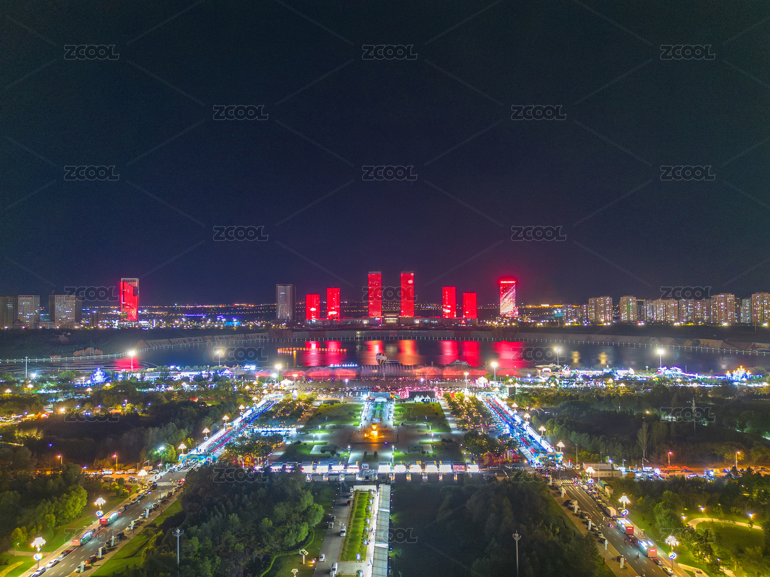 中国内蒙古鄂尔多斯康巴什夜景航拍