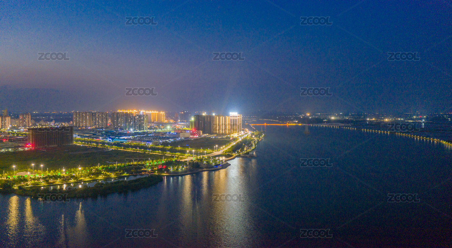 西双版纳景洪 俯瞰夜晚的澜沧江与白象沙滩