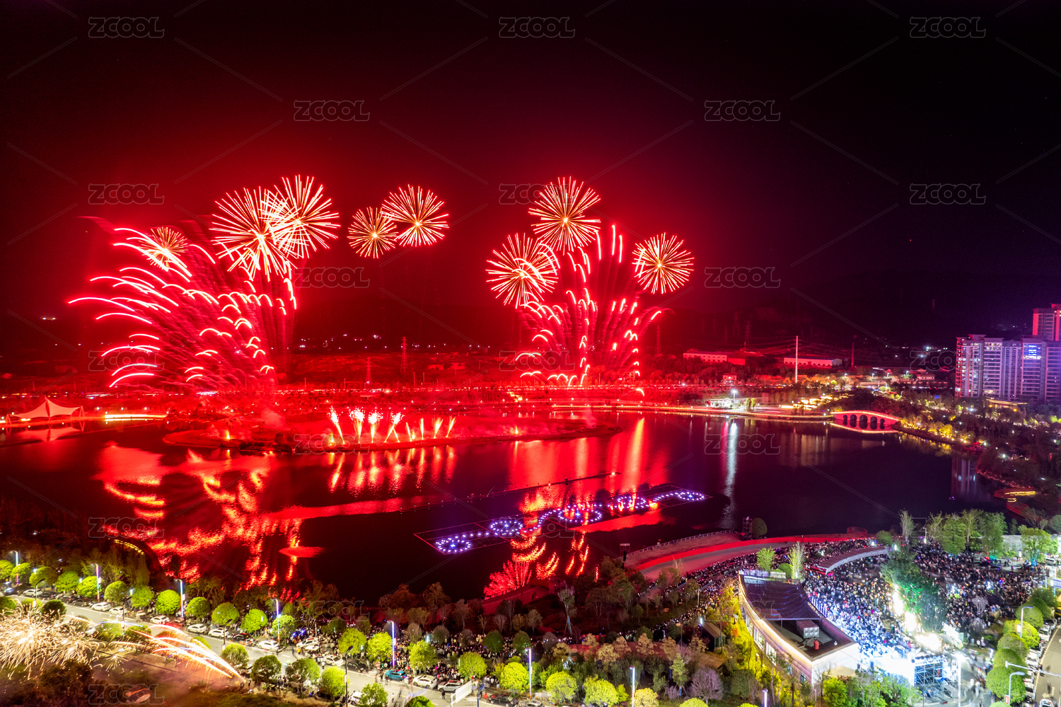 中国湖南醴陵陶子湖五一劳动节烟花秀