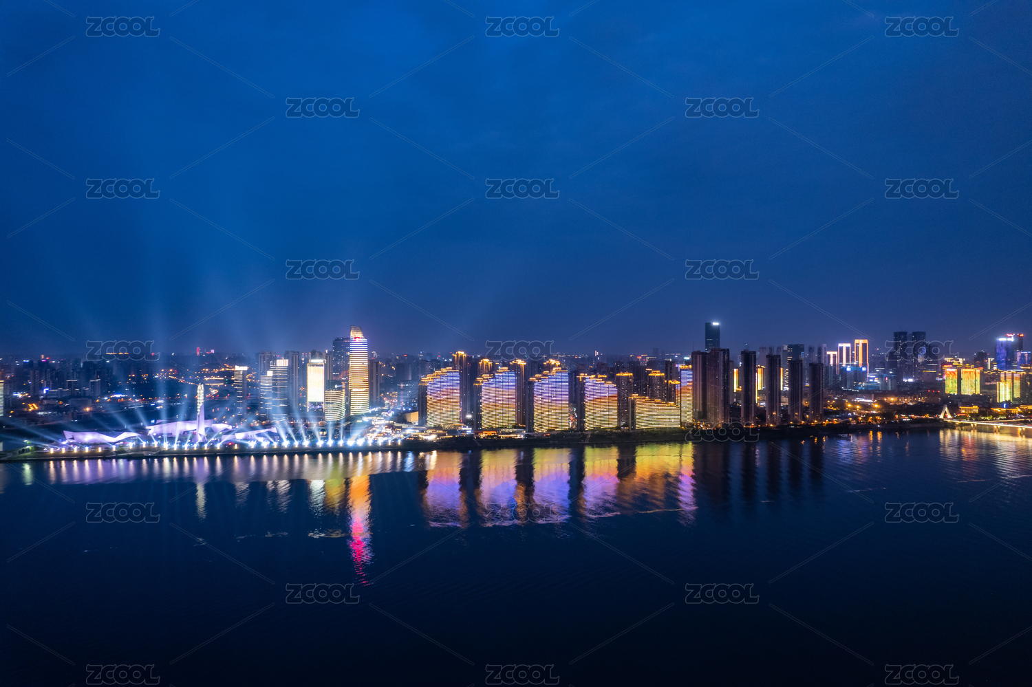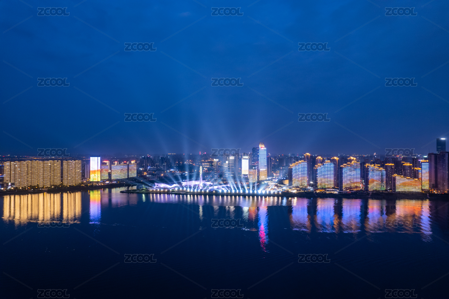 内蒙古,鄂尔多斯,康巴什区,夜景,城市风光,航拍视角,城市,建筑,夜晚,照亮