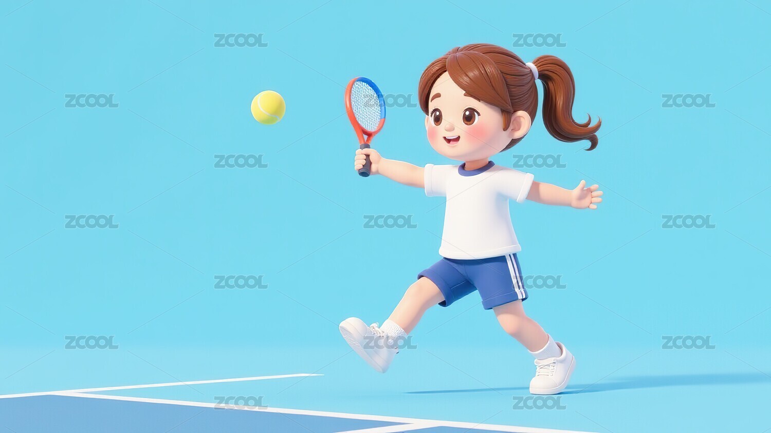 卡通人物,羽毛球,羽毛球拍,运动,女孩,跳跃,运动服,蓝色,绿色,羽毛球馆