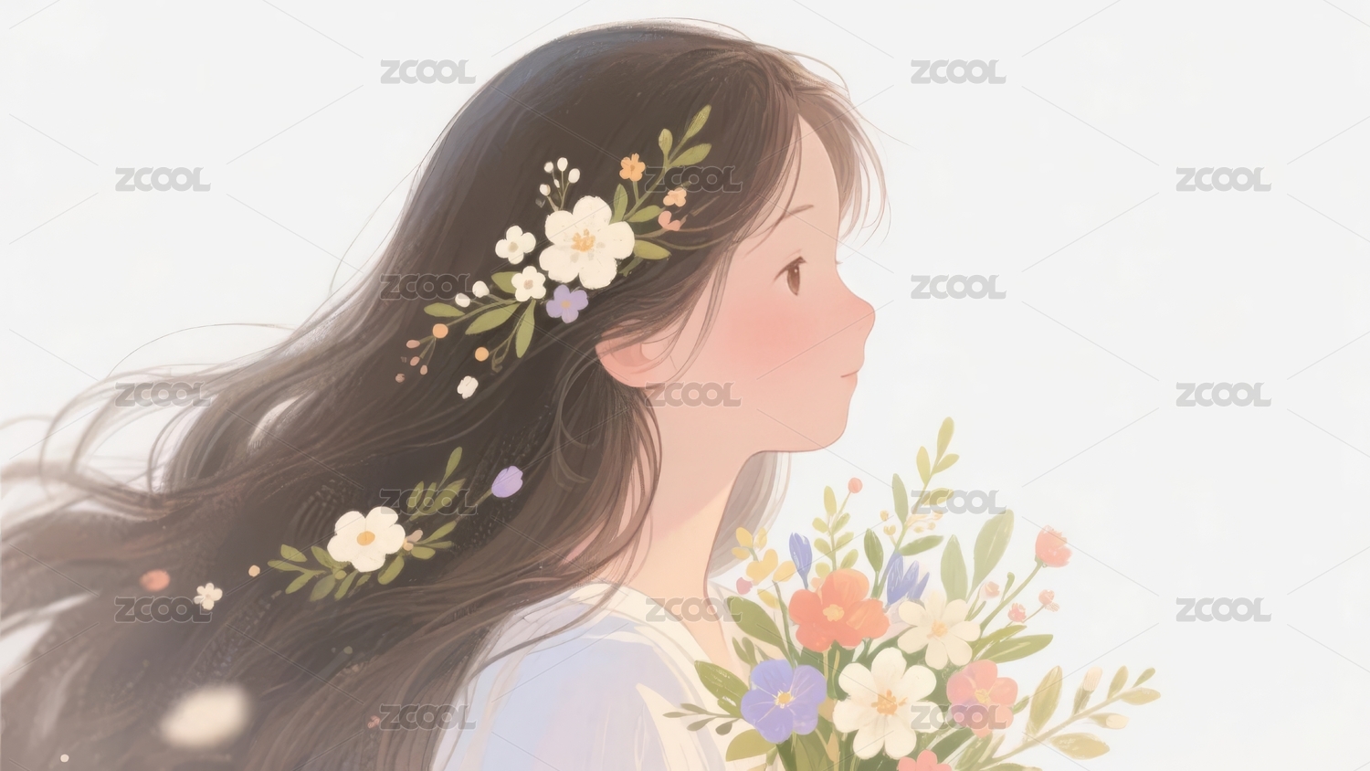 花环少女手捧鲜花