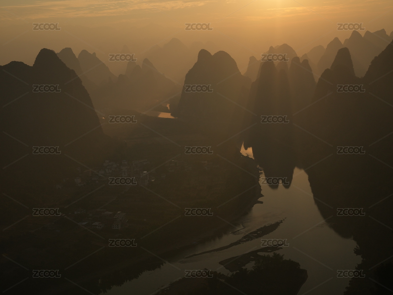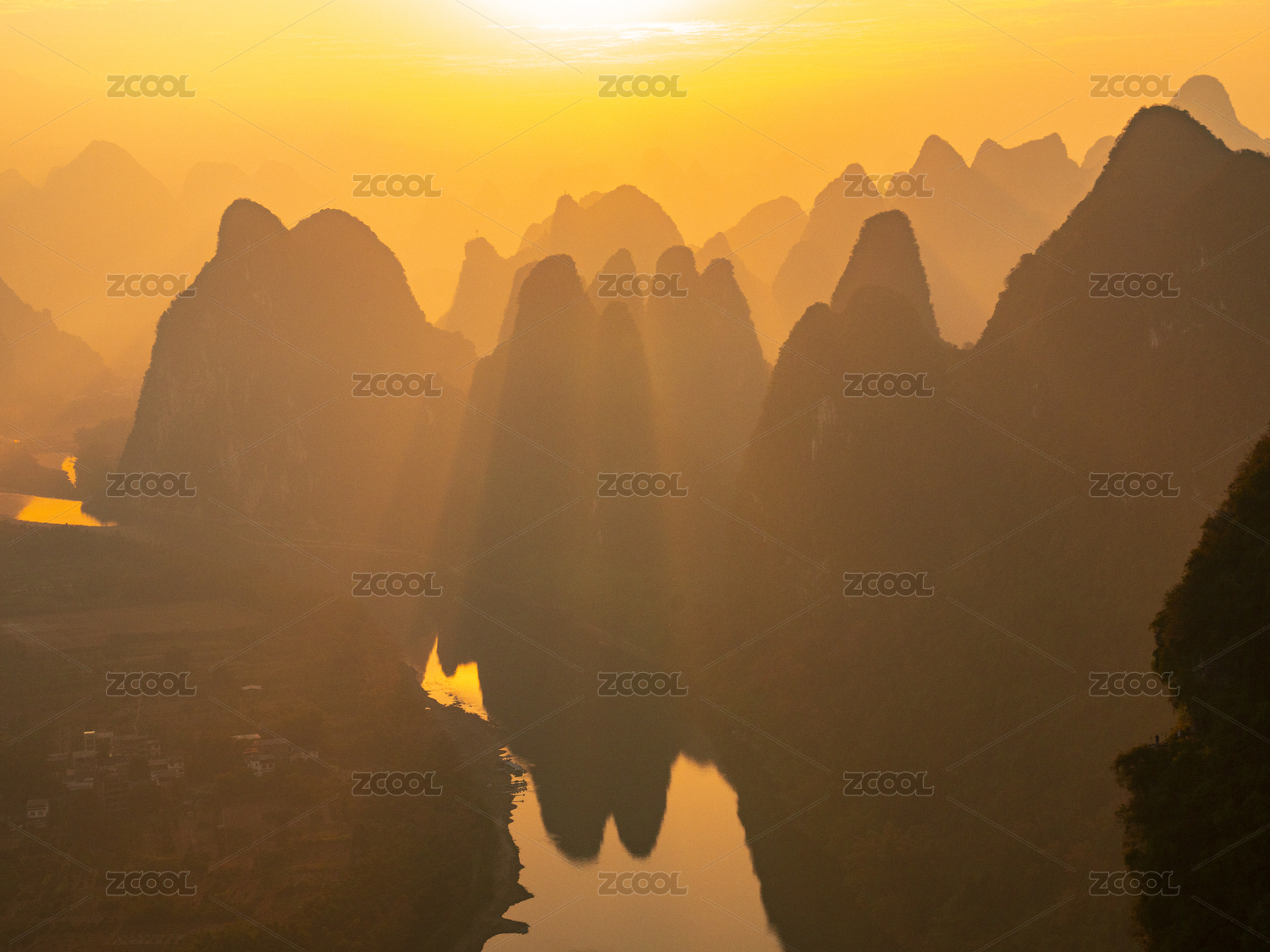 漓江,河流,桂林,相公山,日出,山水,阳朔,山峰,天空,黎明