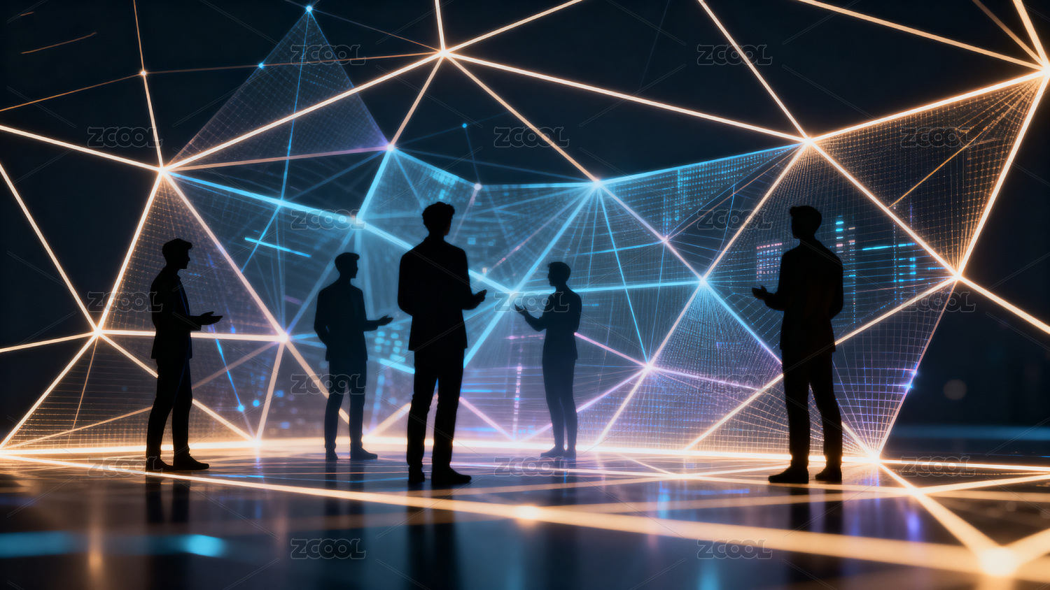 科技,网络,节点,连接,发光,线条,蓝色,背景,未来,图形