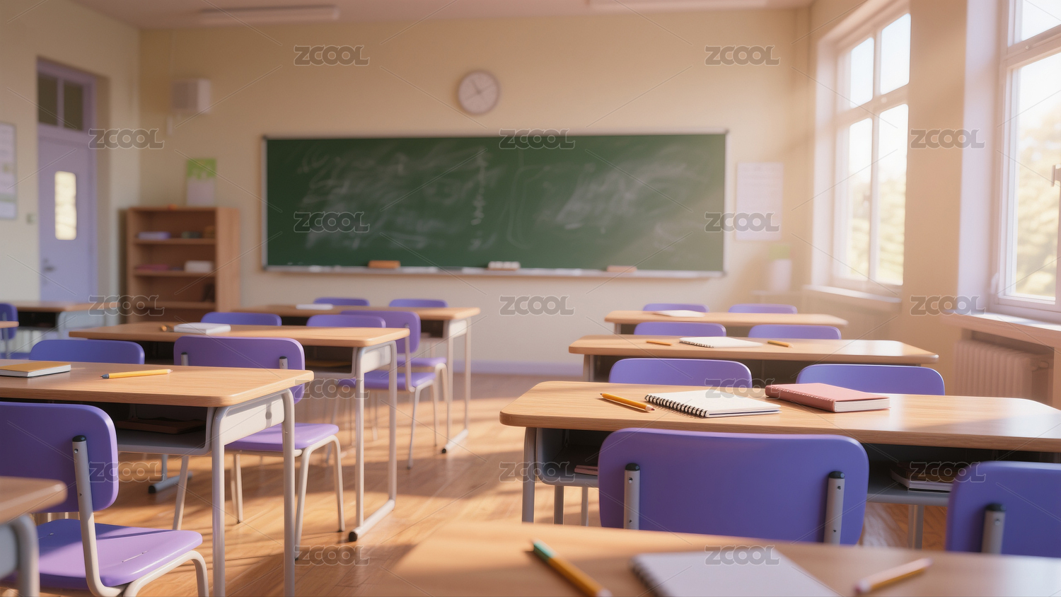教室场景3D渲染背景素材