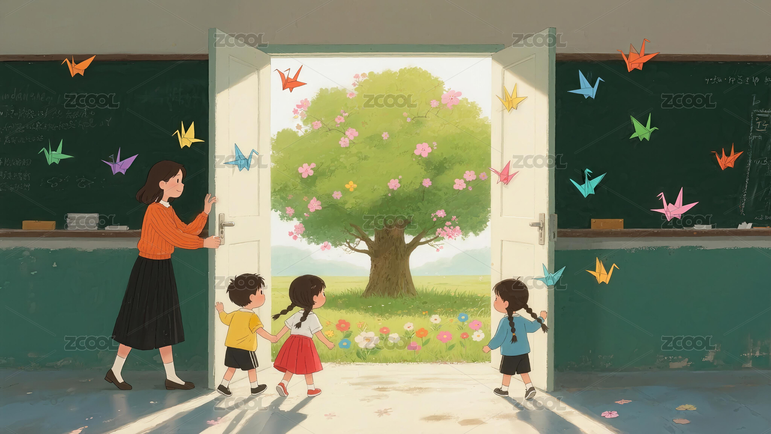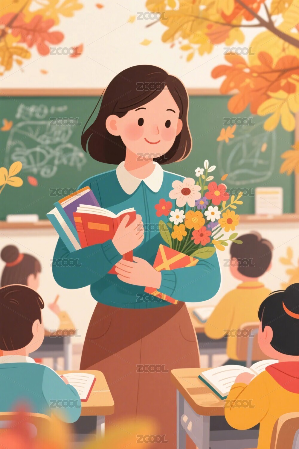 女士,男孩,教室,黑板,南瓜,课本,秋叶,装饰,礼堂,互动