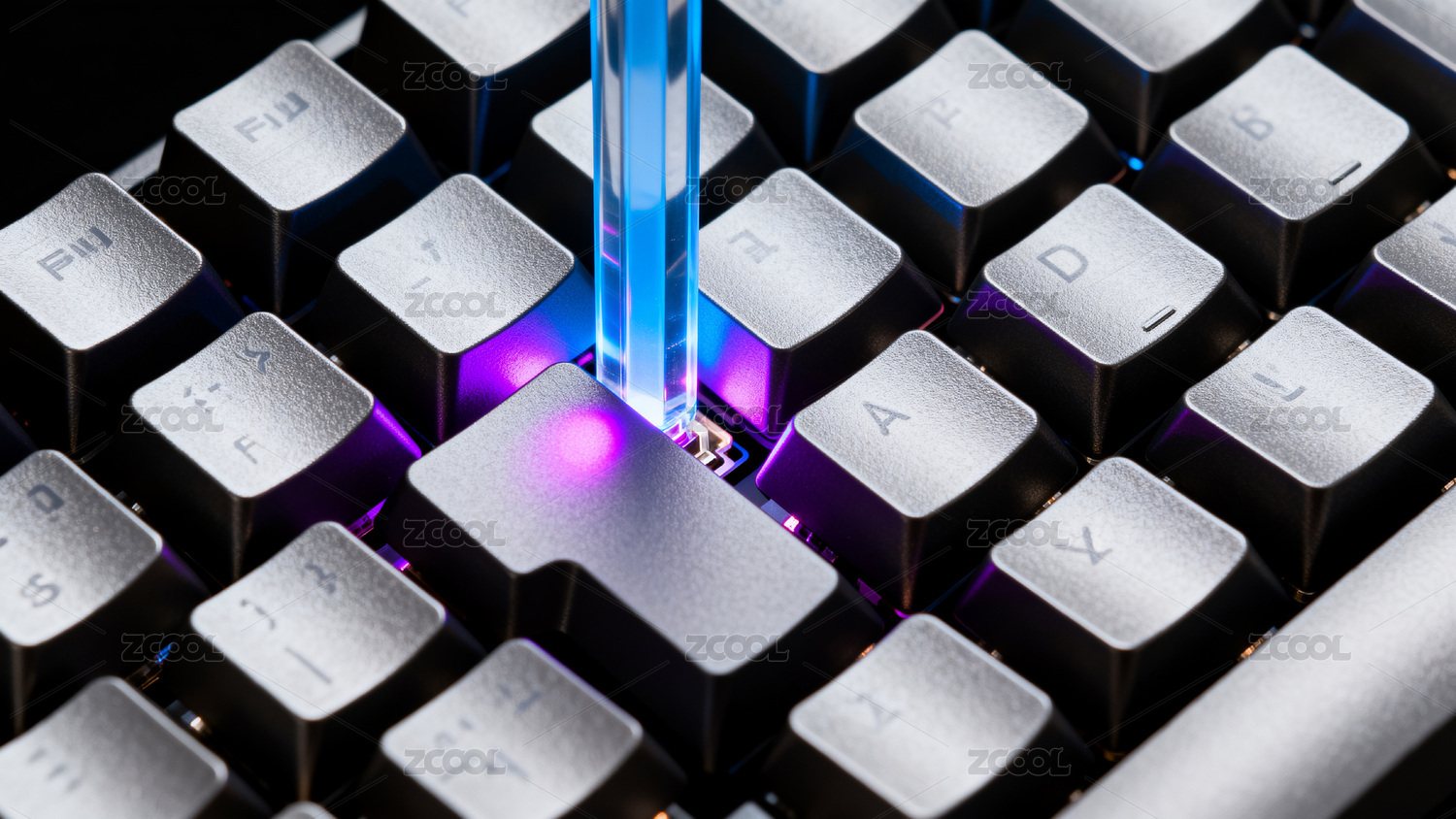桌面上多个机械键盘的键帽灯闪烁着亮光