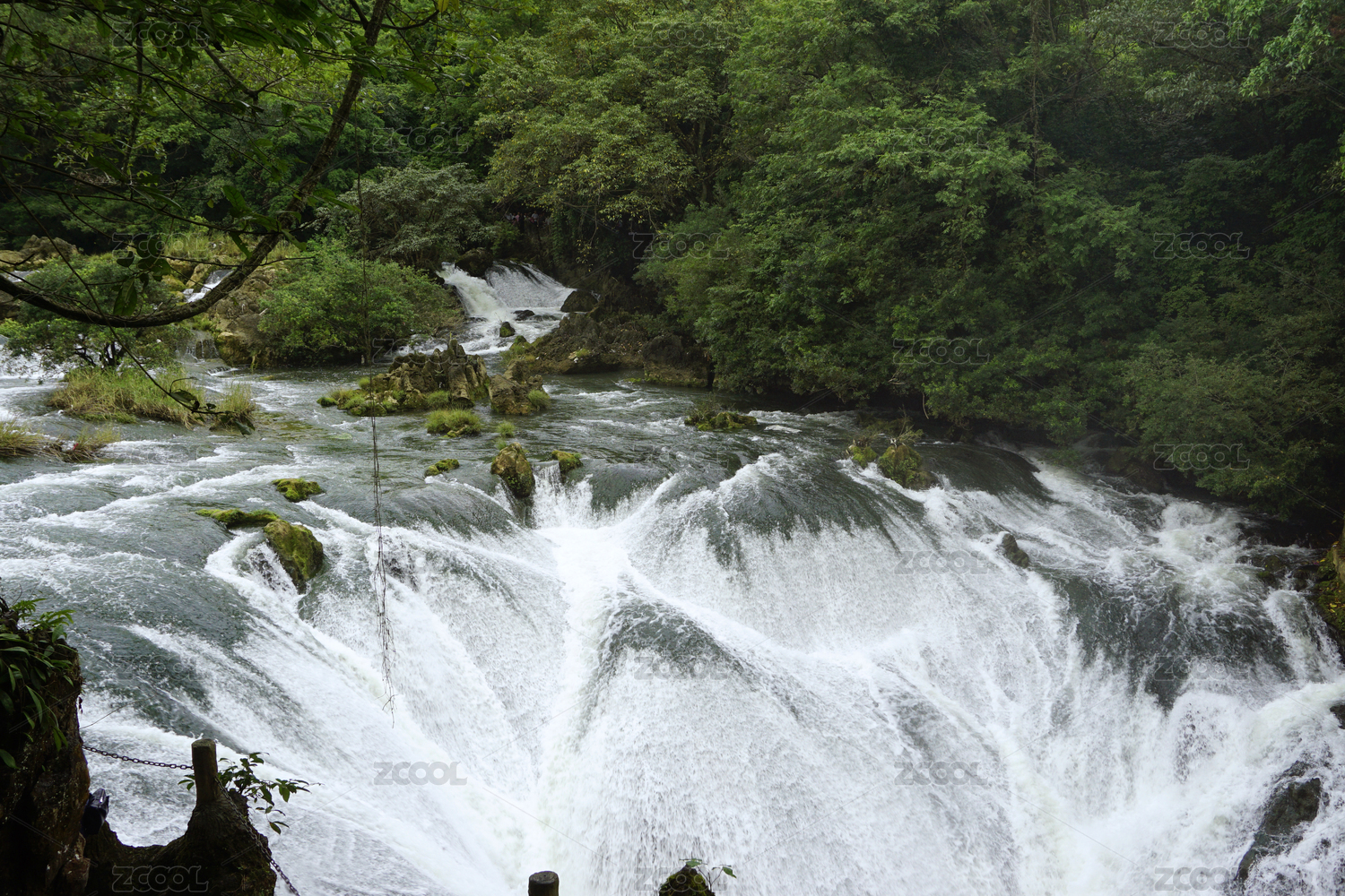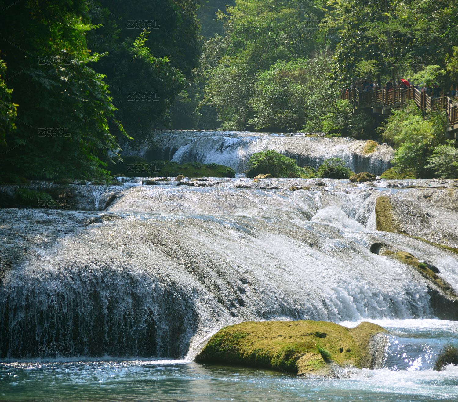 中国贵州黔南荔波小七孔跌水瀑布自然风光