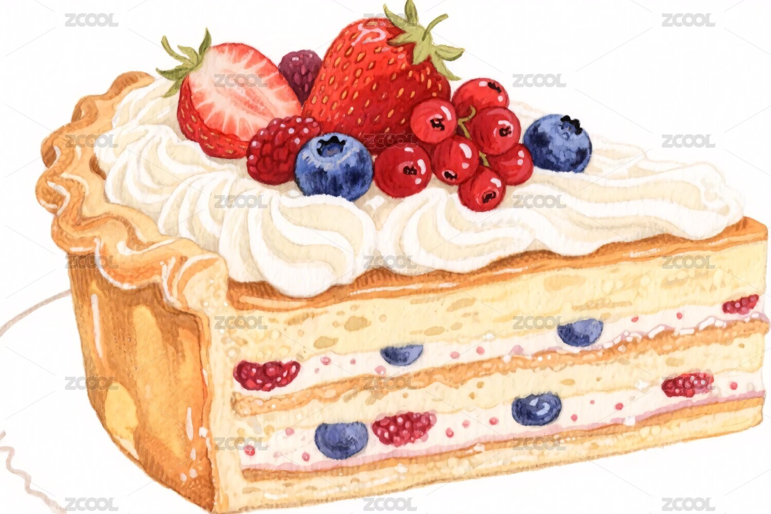 蛋糕,水果,奶油,蓝莓,草莓,甜点,分层,插画,美味,糖霜