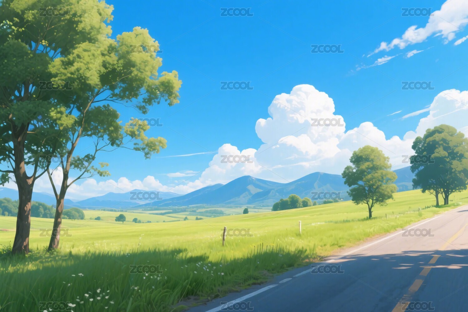复古日漫风景草地公园自然户外旅游夏季旅行