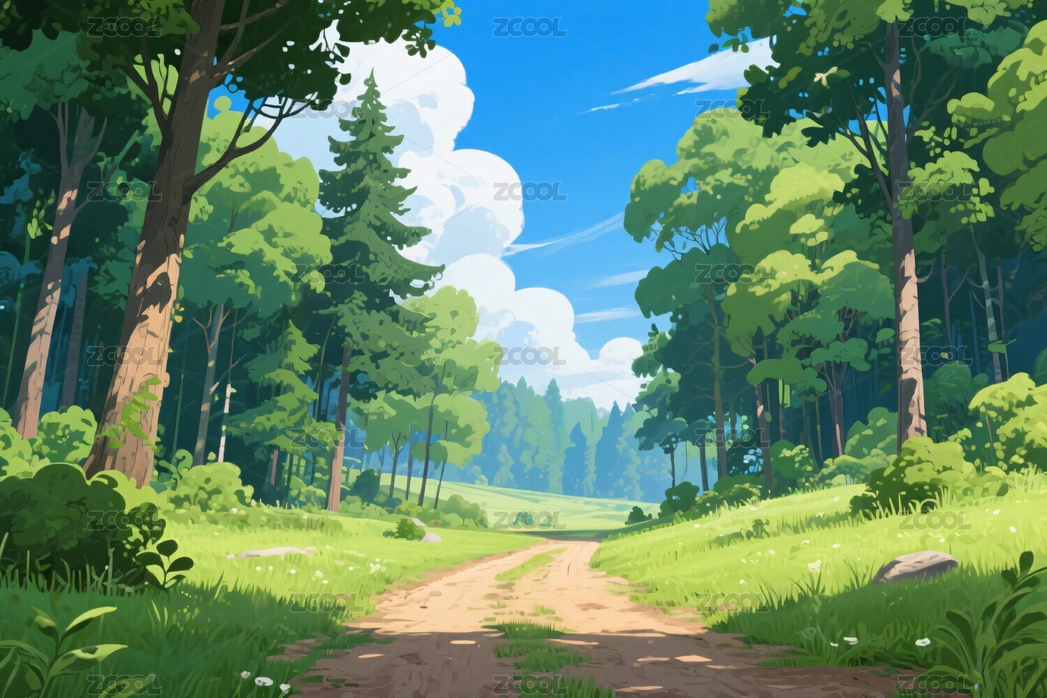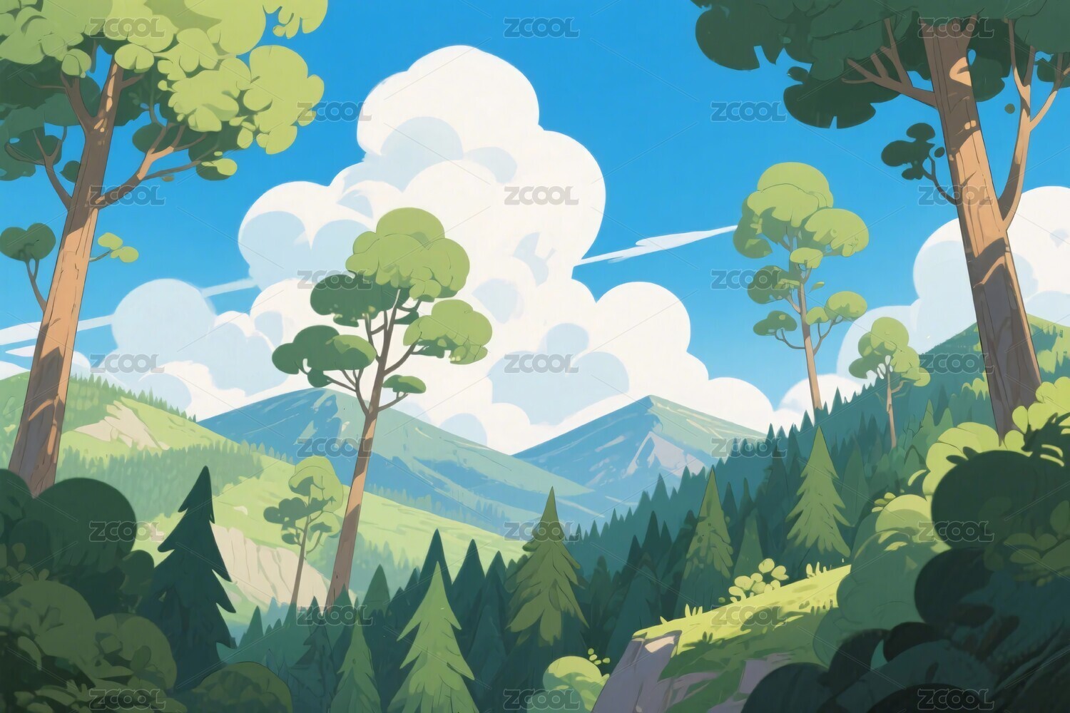 森林,树木,草地,天空,云朵,森林插画,自然风景,绿色,生态,插画