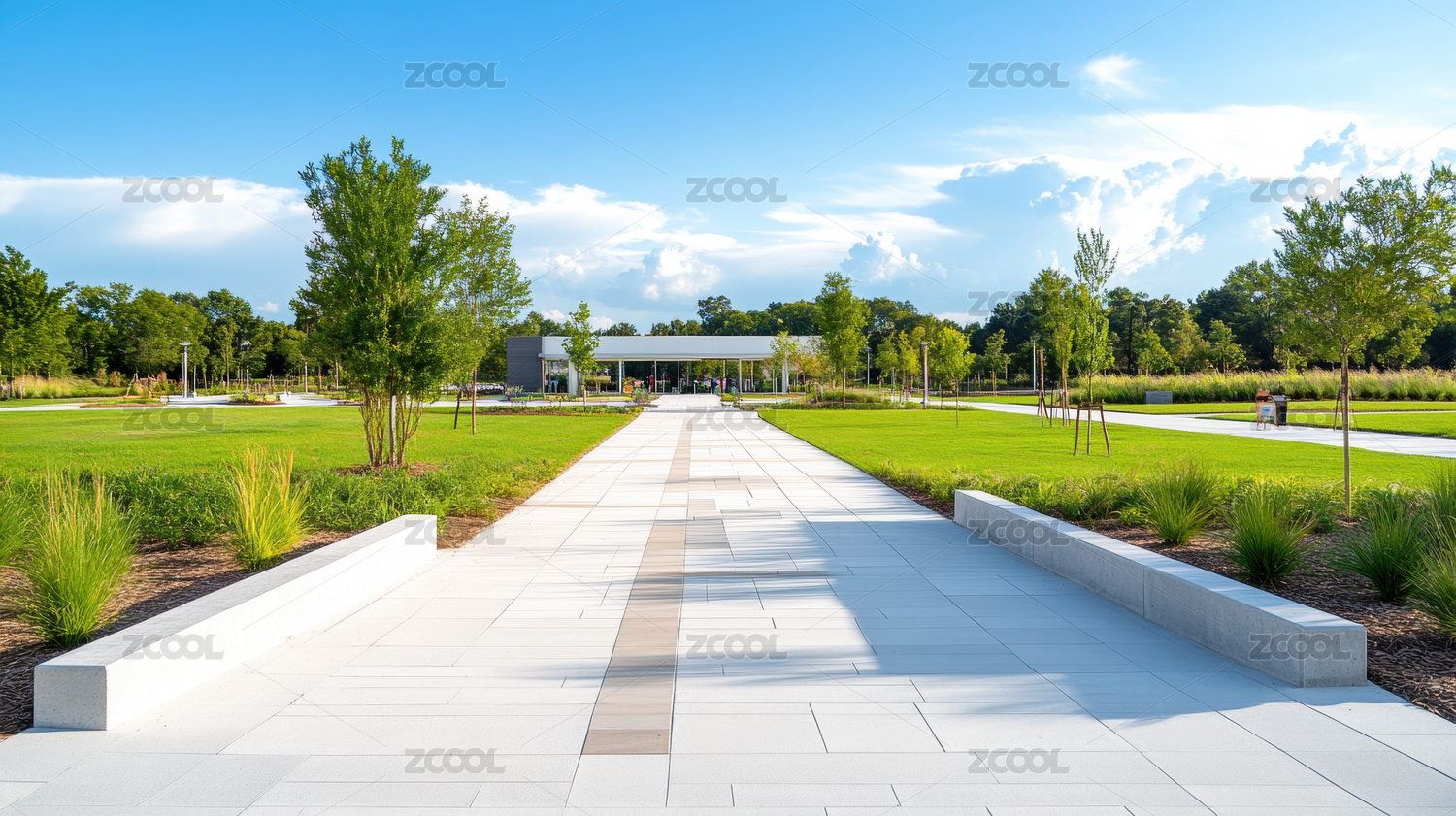 中国哈尔滨秋季晴天太阳岛景区树林草地道路