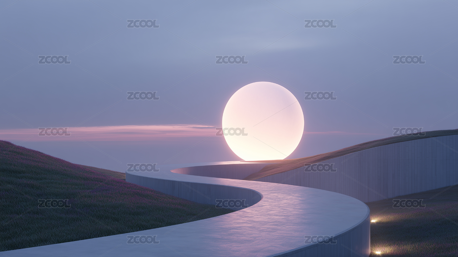 紫色花海中的圆形舞台