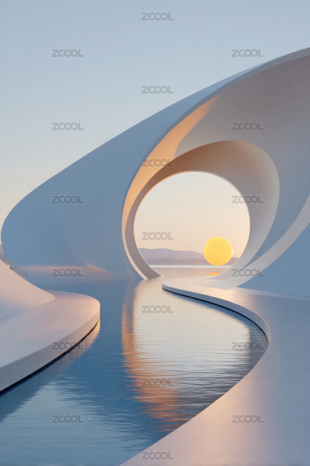 梦幻黄昏中的现代建筑与水景