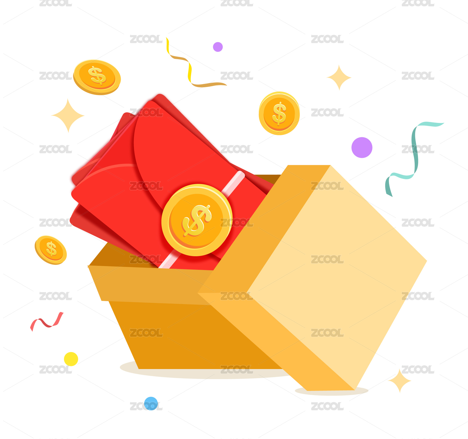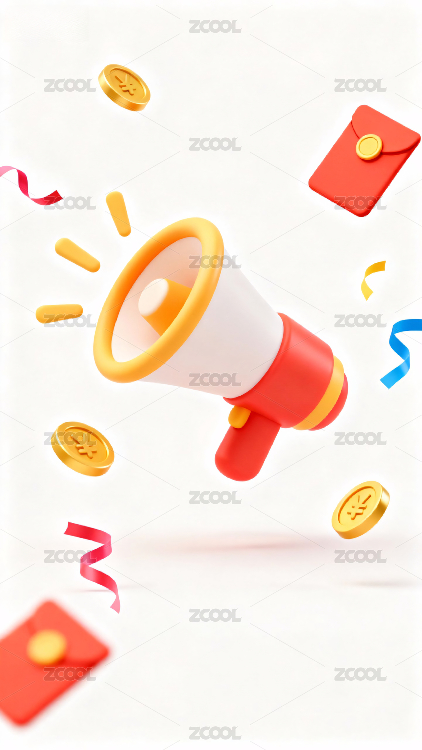喇叭,红包,金币,促销,通知,活动,宣传,彩带,喜庆,插图