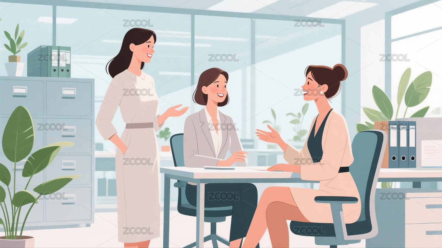 办公室商务人士工作交流场景