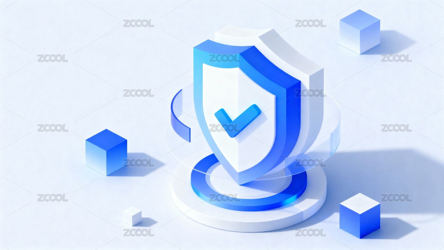 蓝色盾牌与透明立方体