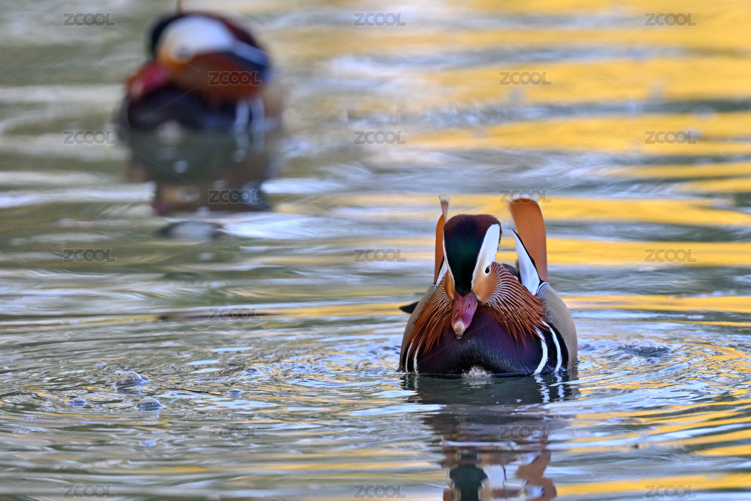 鸳鸯,官鸭,水禽,鸟类,动物,野生动物,池塘,游水,嬉戏,戏水