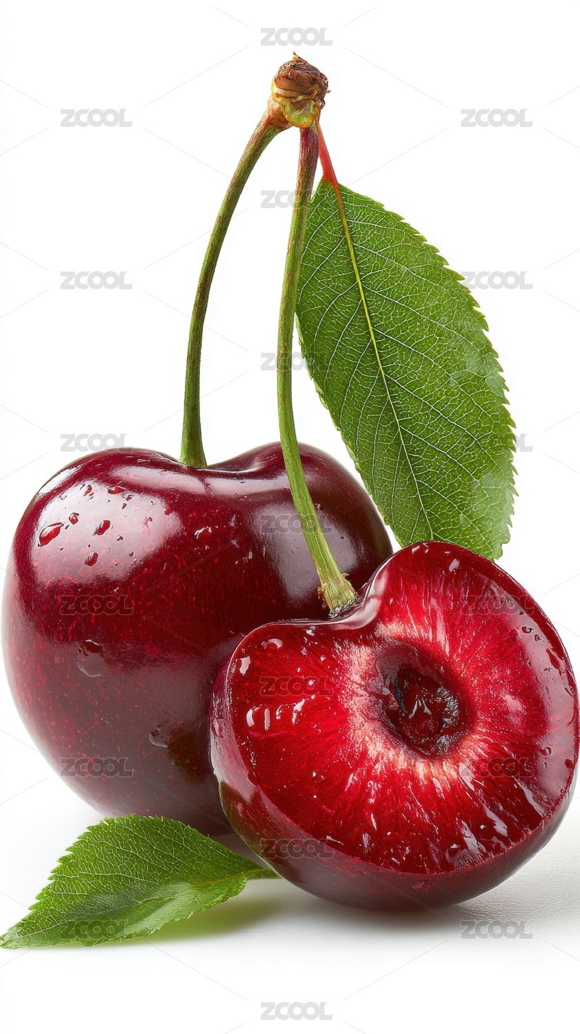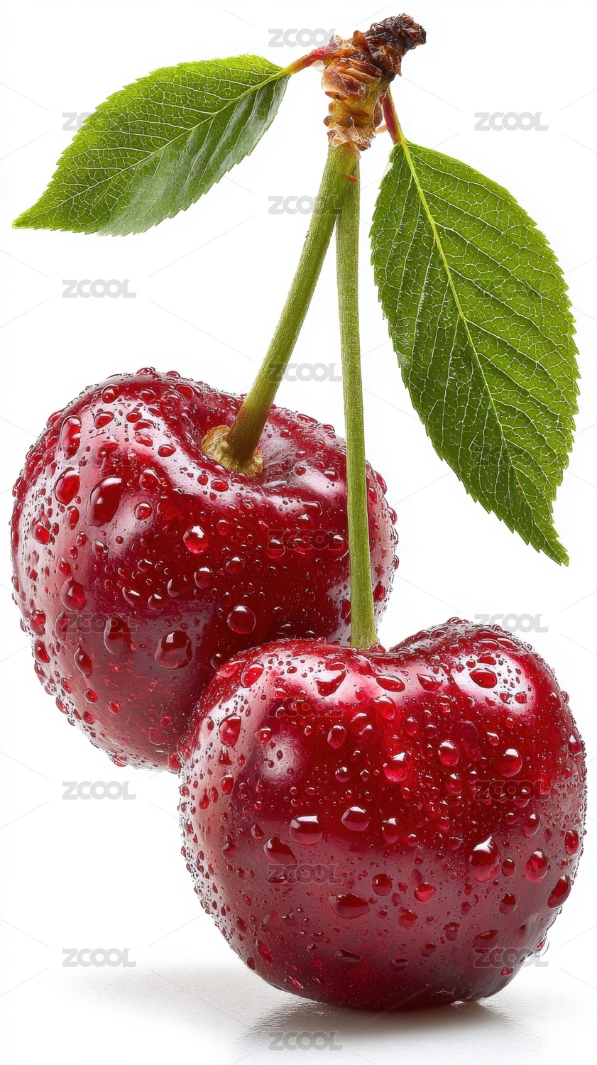 樱桃,绿叶,果实,植物,特写,自然,新鲜,美食,插画,光影