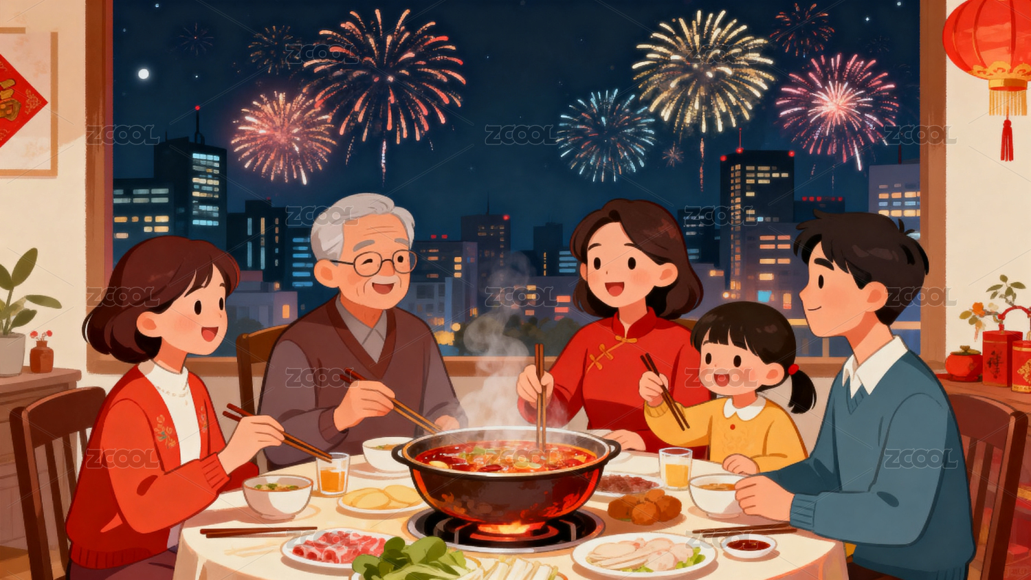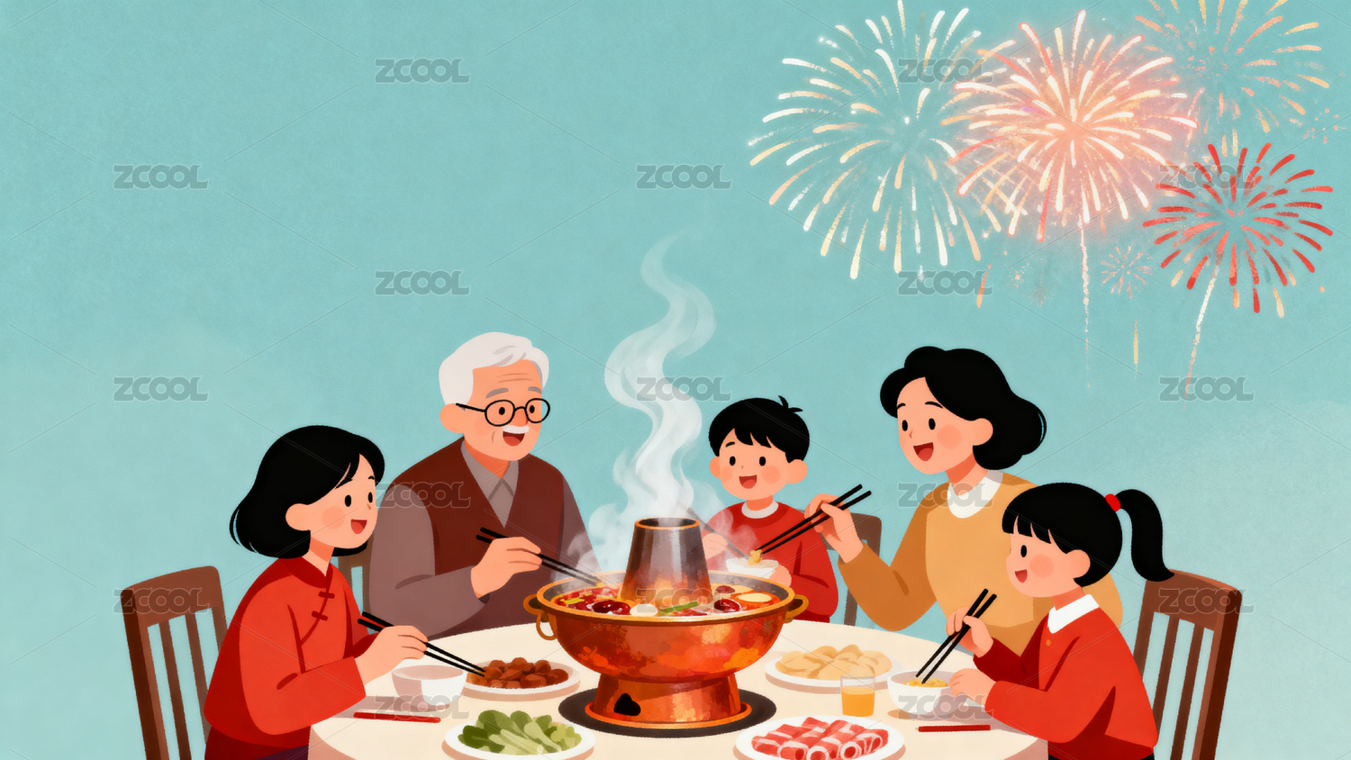 节日,黄色,室内,食物,酒杯,餐具,家人,火锅,老人,青年
