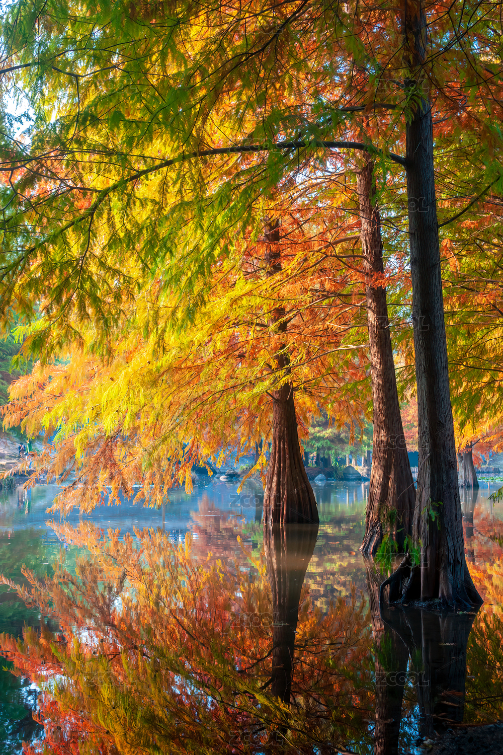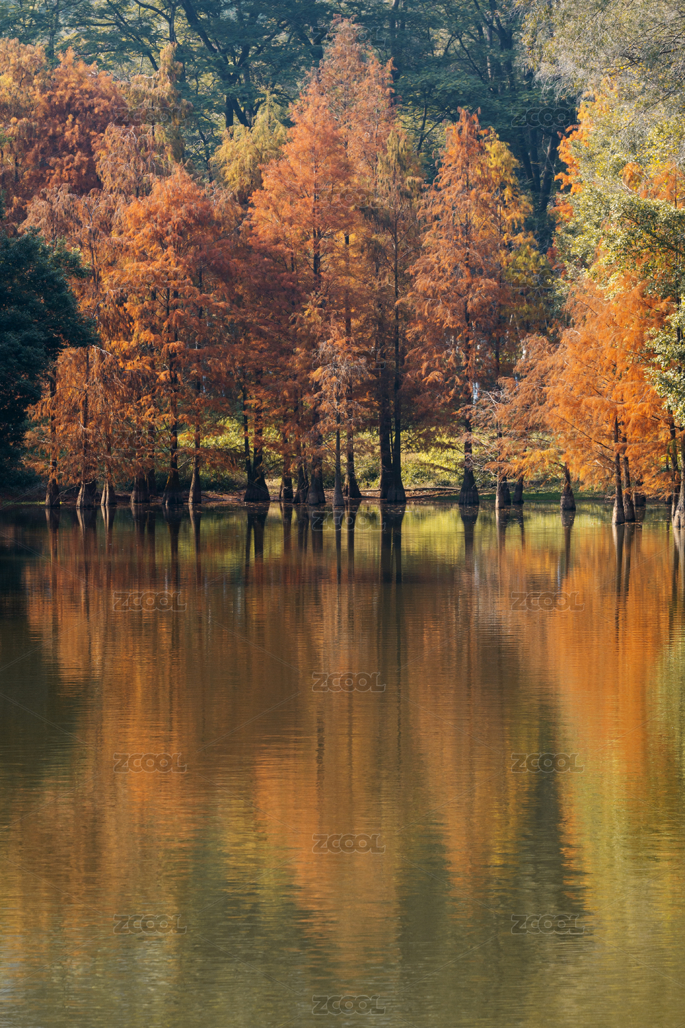 江苏南京明孝陵燕雀湖金秋水杉林倒影