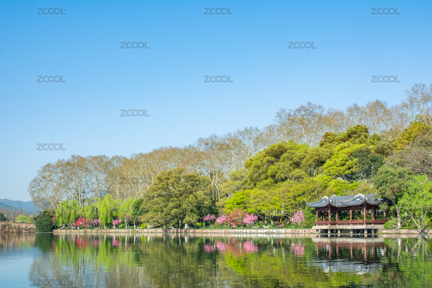 浙江,杭州,西湖,晴朗,宁静,风光,风景,蓝天,天空,春天