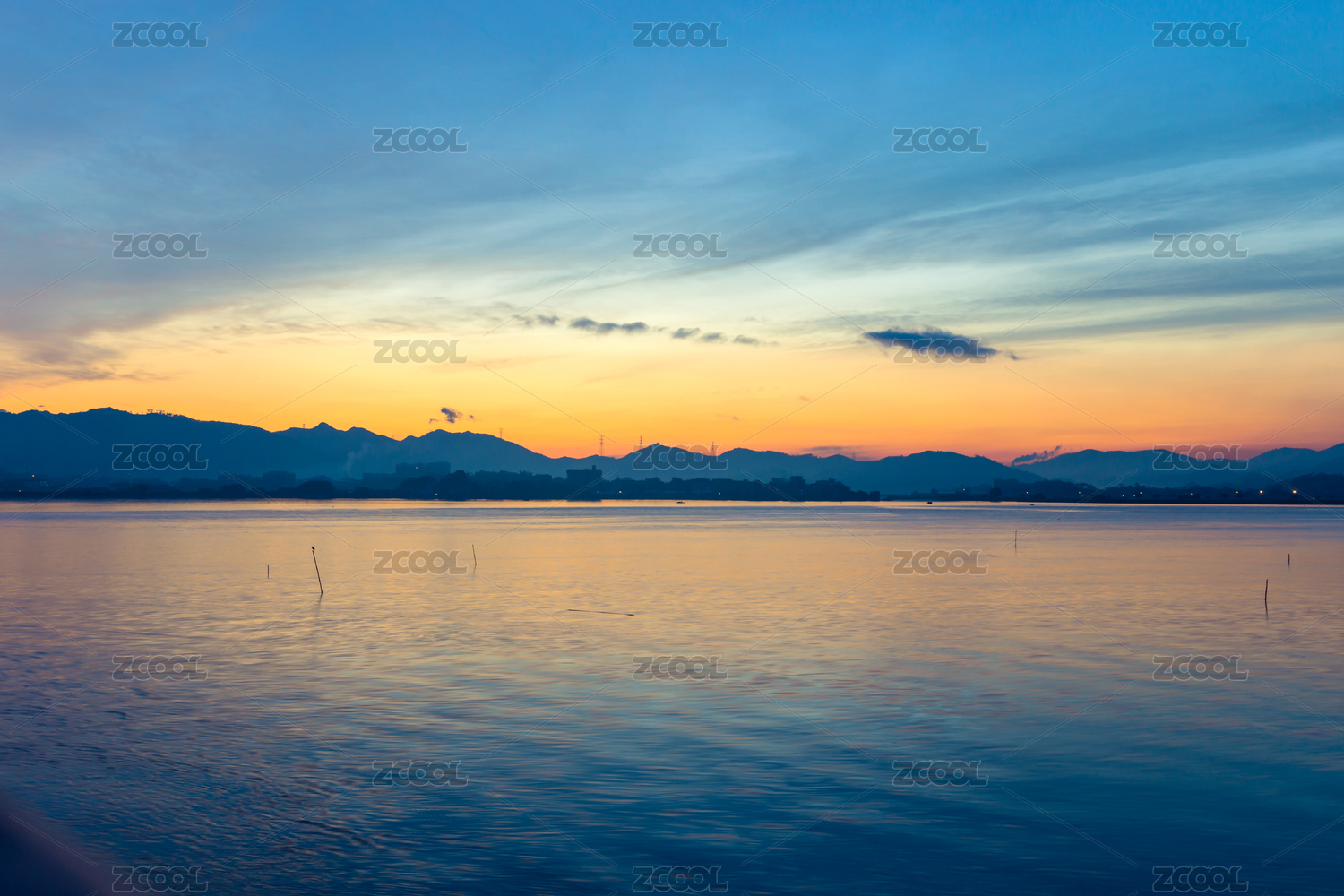 日落下的西湖山水