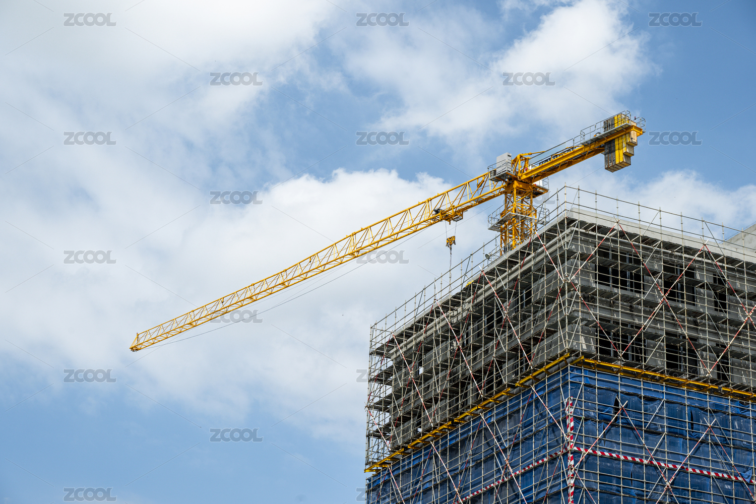 蓝天下正在施工的高层建筑一角