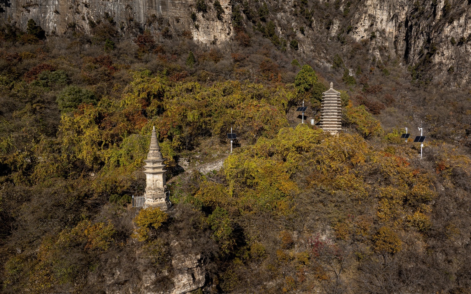 河北省,保定市,易县,双塔庵双塔,航拍,古塔,秋景,山林,山峰,秋天