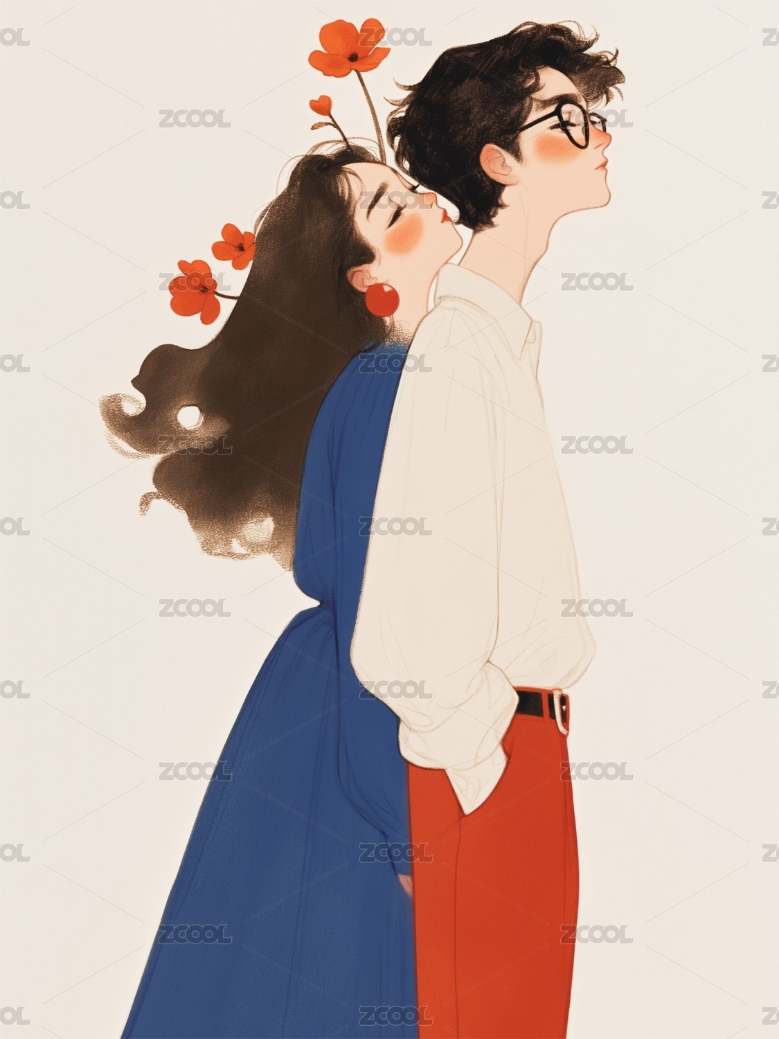 阳光洒在一起牵手出门的情侣身上,温暖幸福