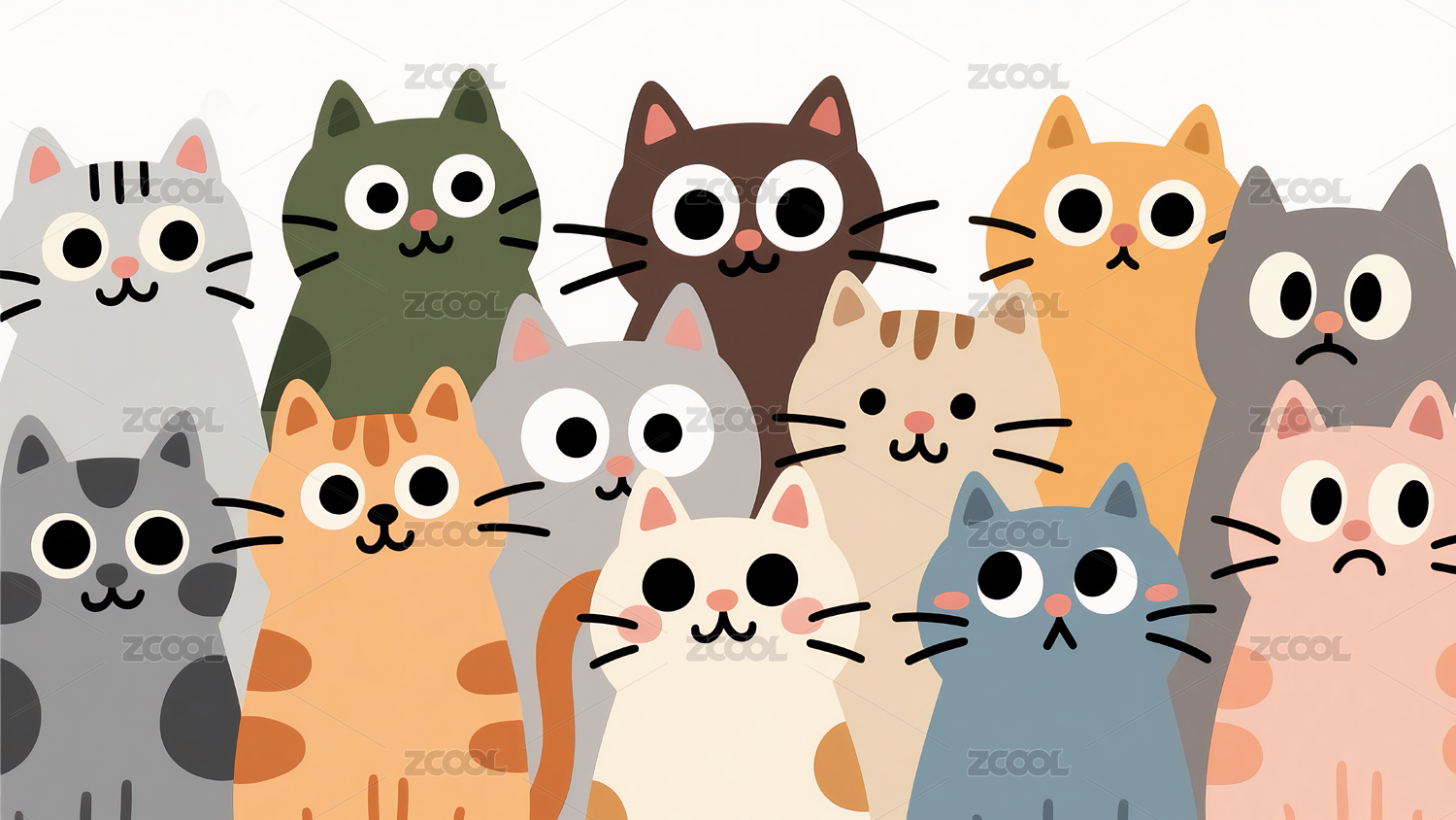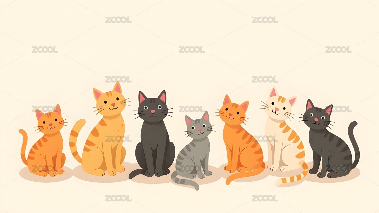 一群可爱的小猫咪插画