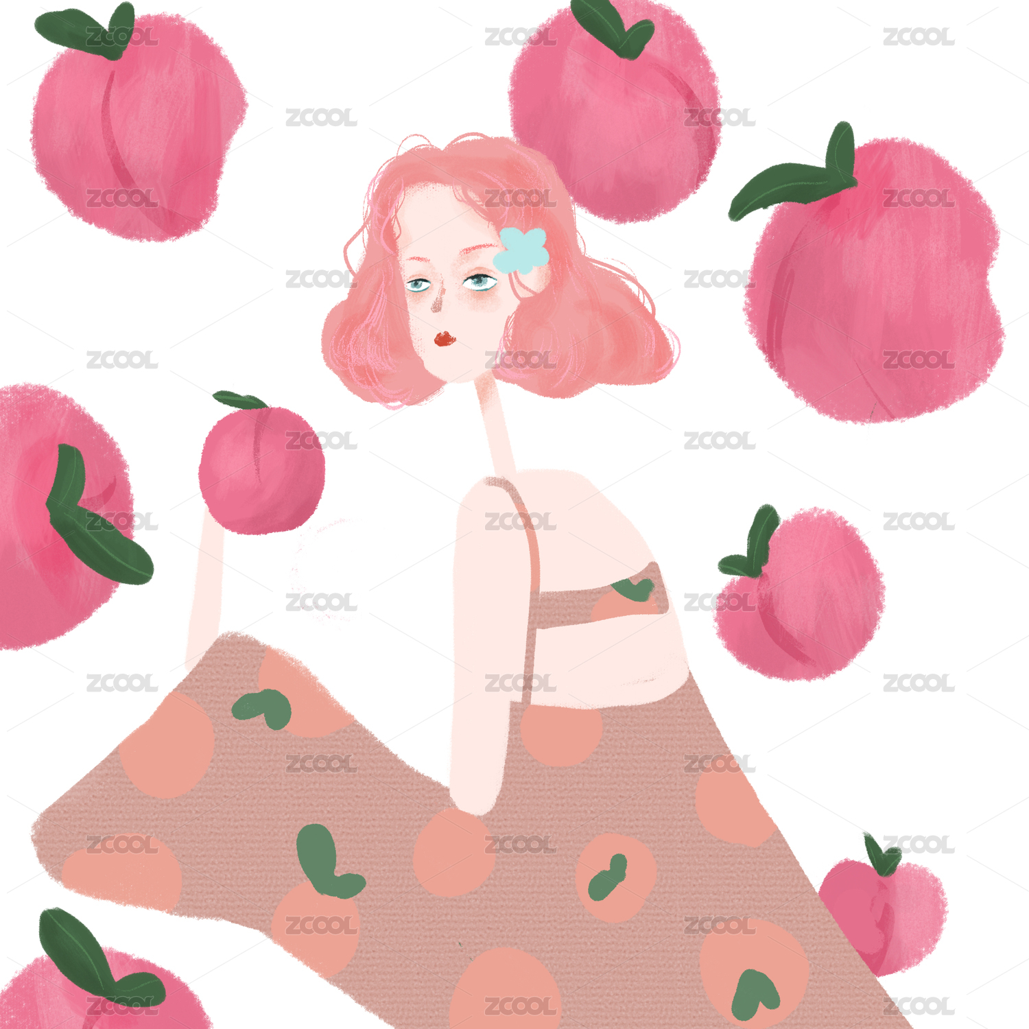 可爱少女清新插画
