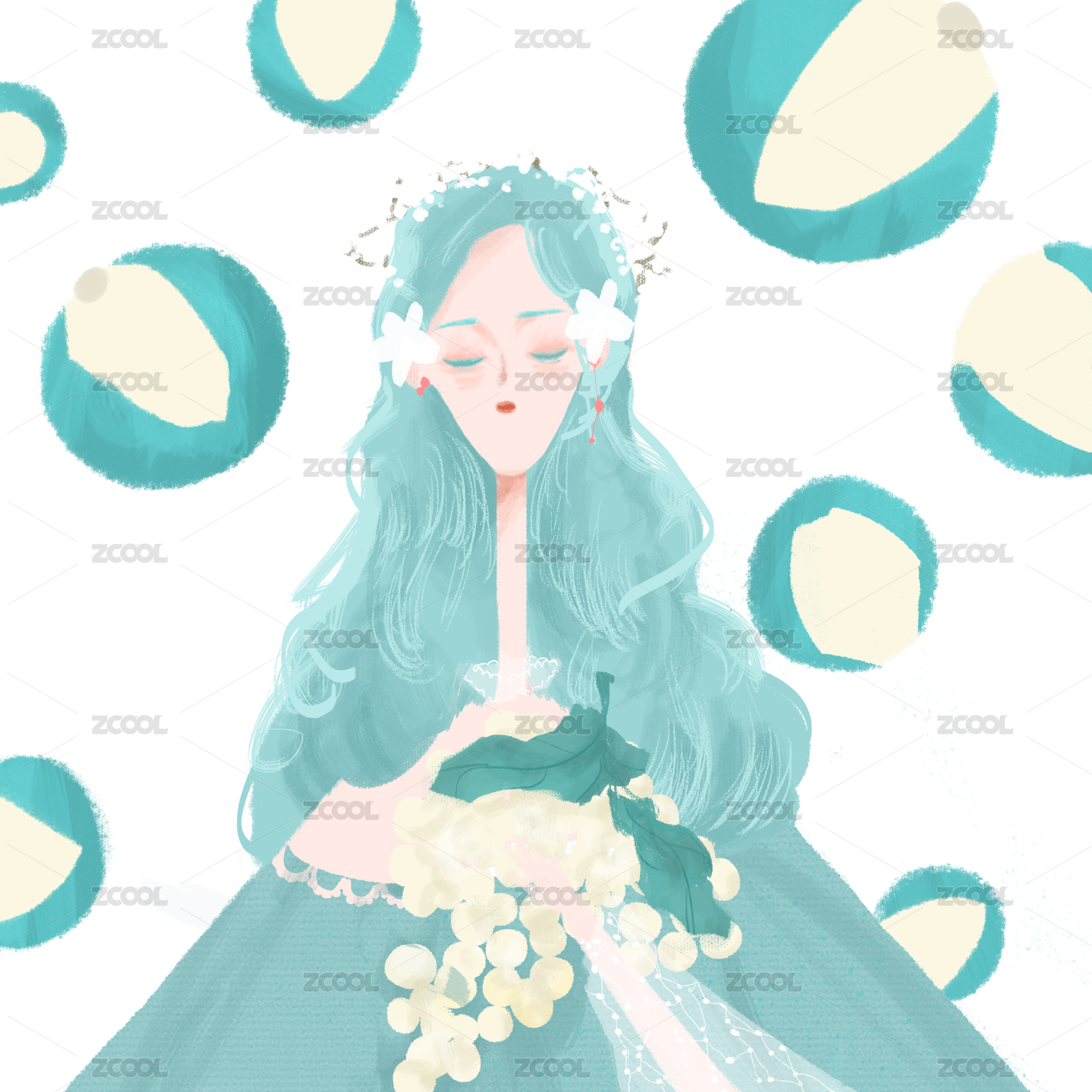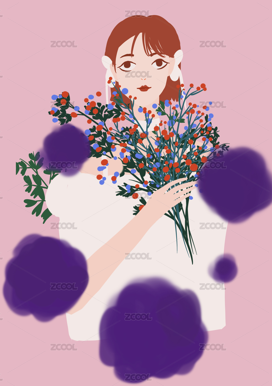 可爱少女植物水彩手绘插画