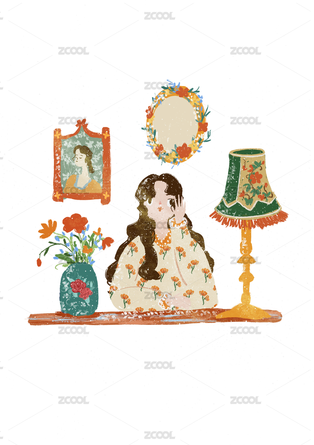 女孩的时尚穿搭和创意搭配-治愈插画
