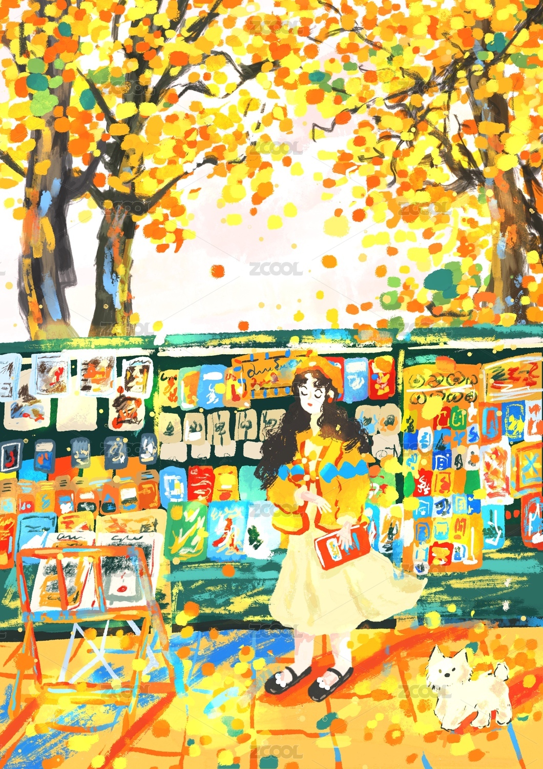 人物,场景,治愈,清新,艺术,设计,画画,绘画,图案,背景