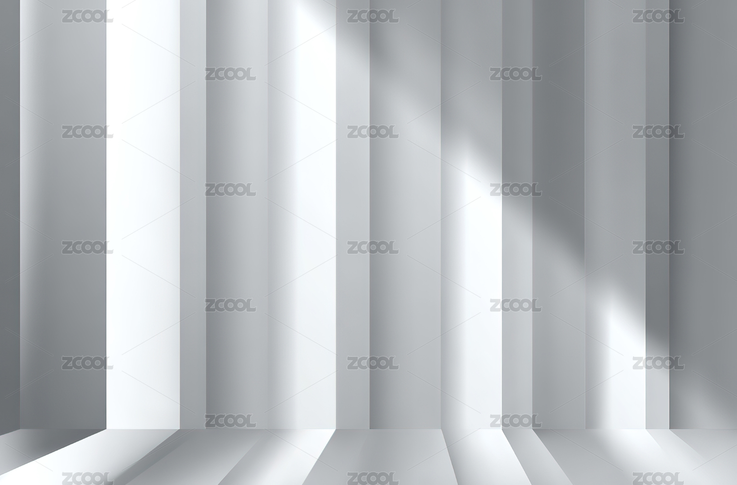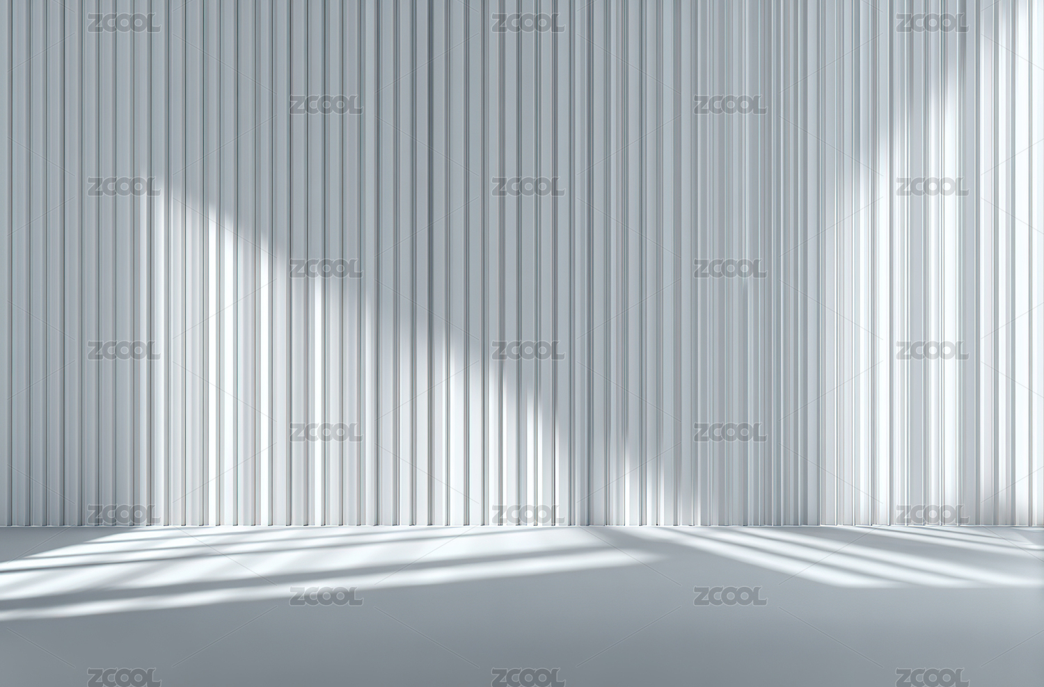 简约白色竖条纹墙面与光影效果