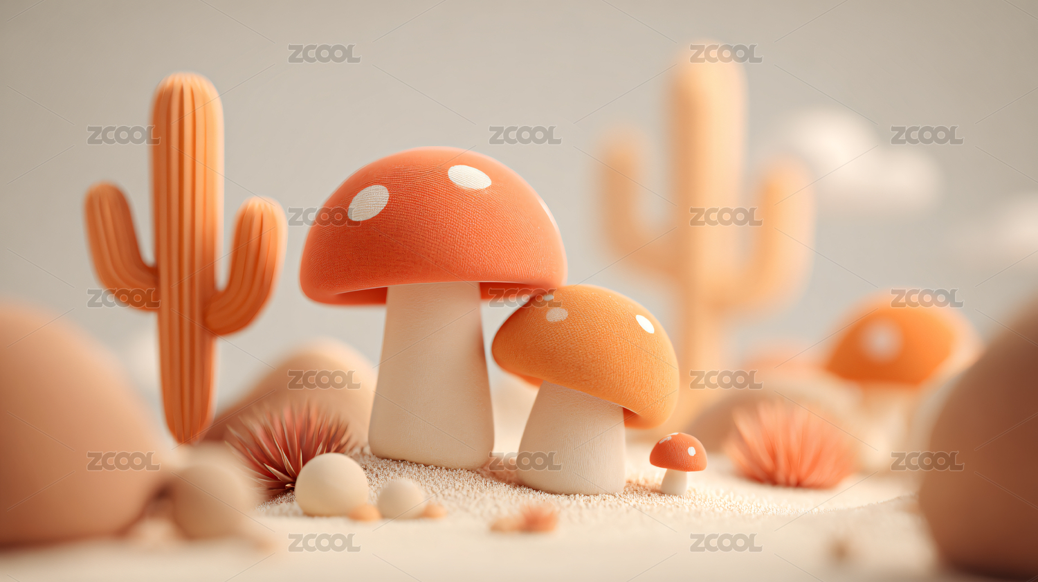 卡通3D水晶蘑菇背景