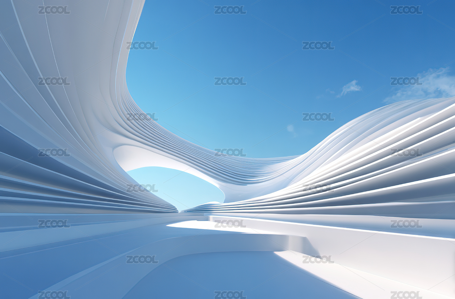 白色流线结构与蓝天