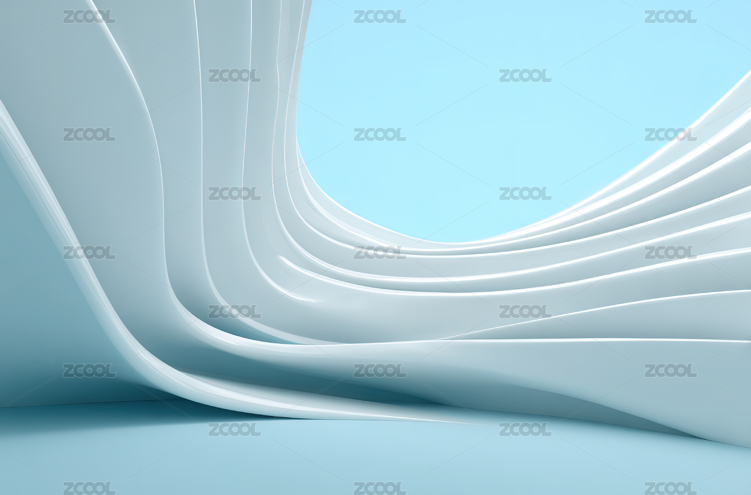 白色波浪形结构蓝天背景