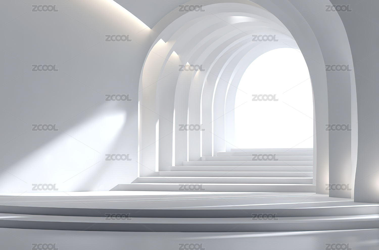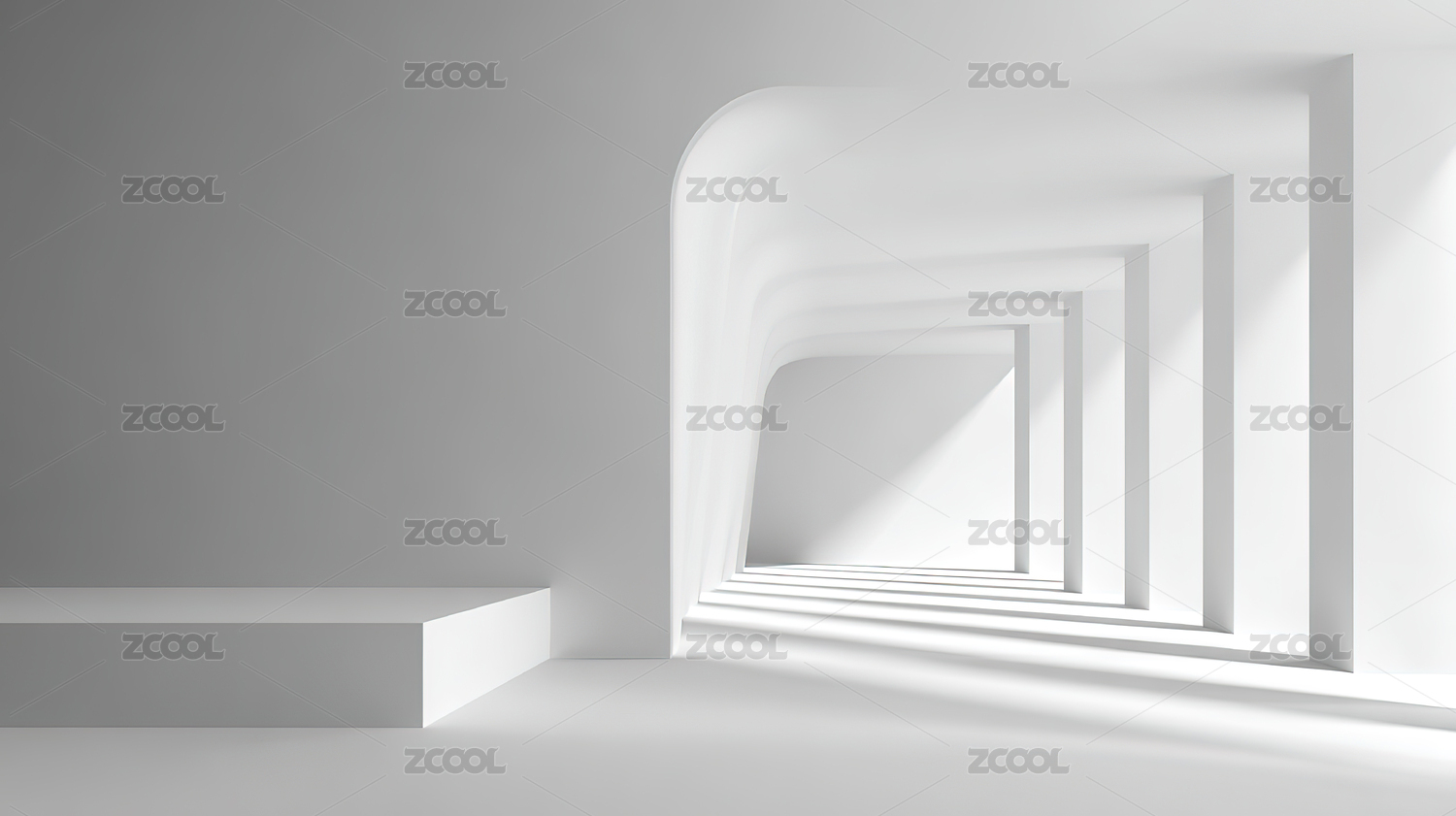 白色拱形长廊的透视空间