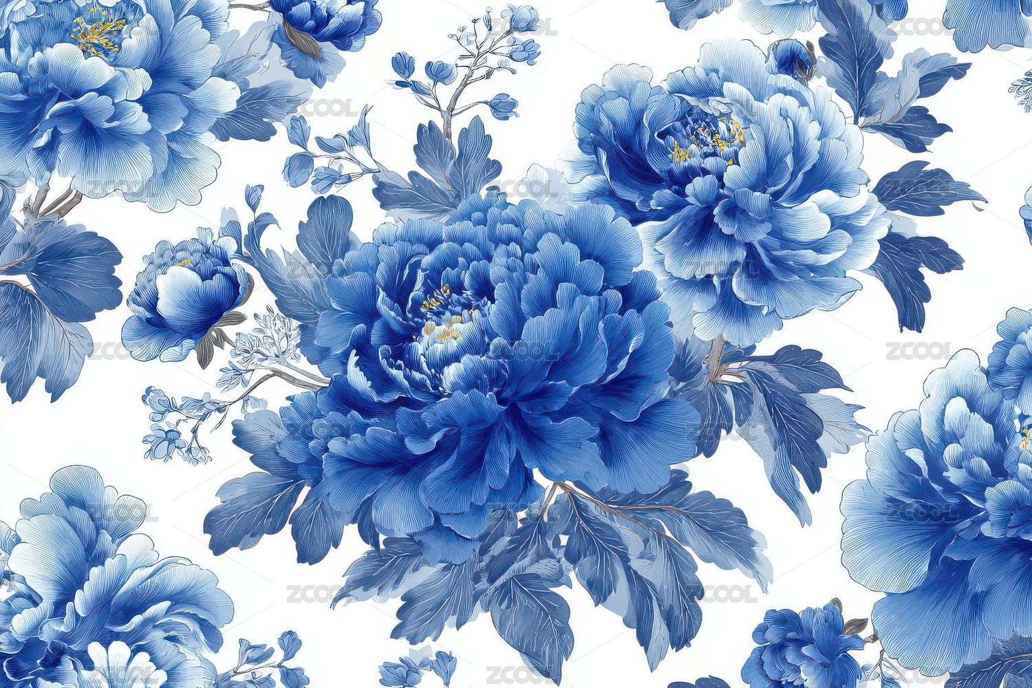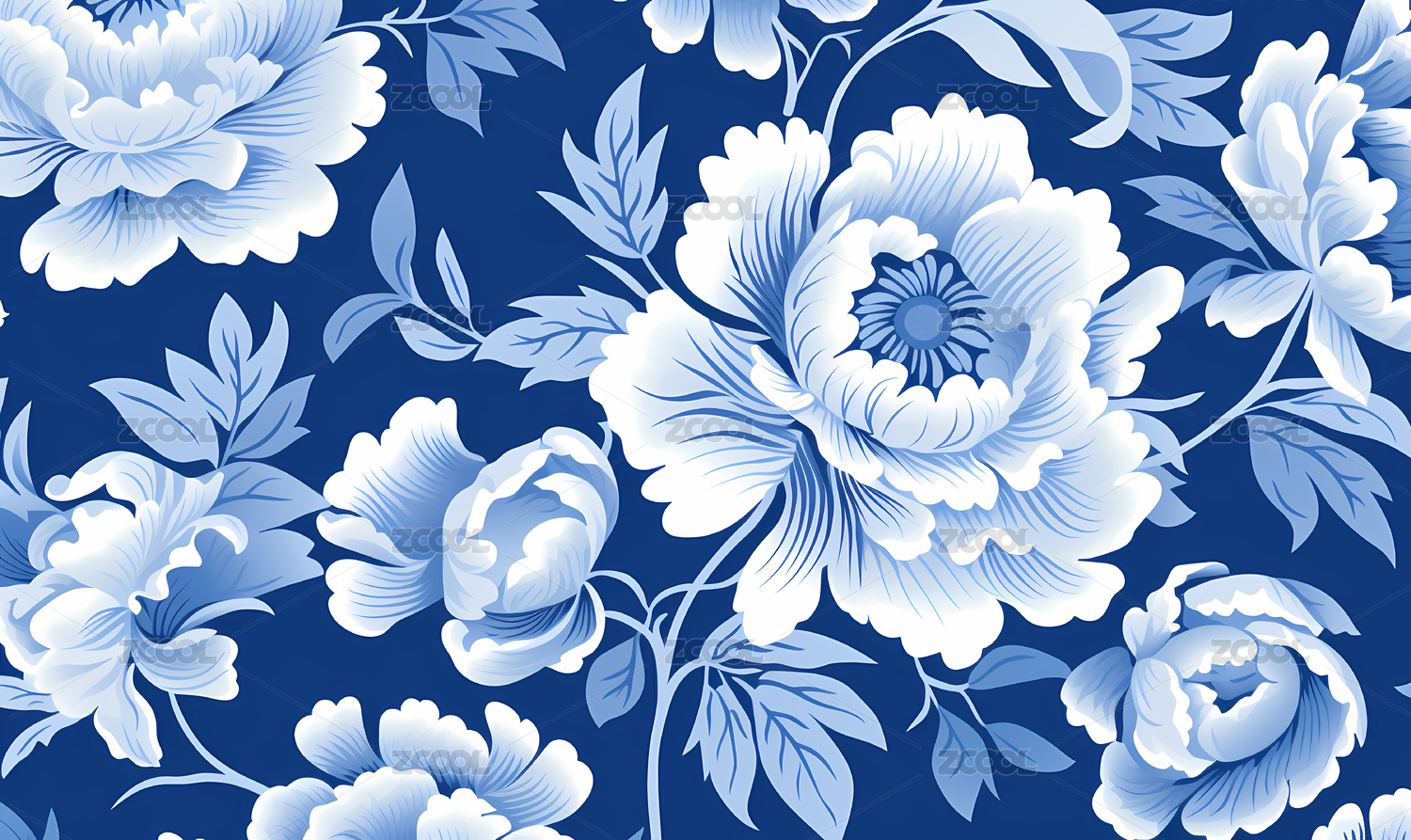 图案, 艺术, 蓝色, 装饰, 叶子, 花卉,青花瓷, 传统, 枝条, 白色背景