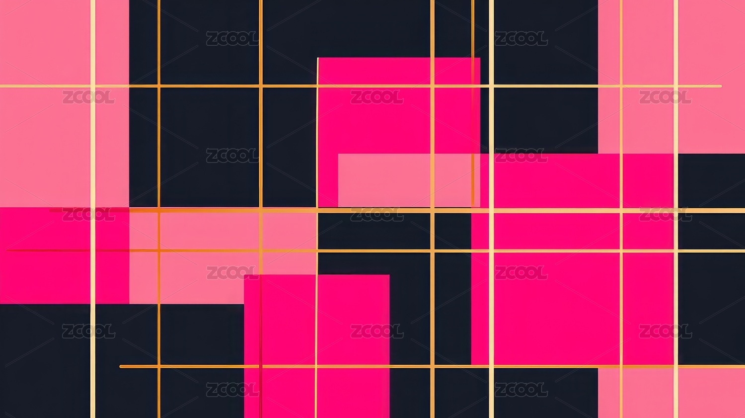 粉色与黑色几何图案搭配金色线条