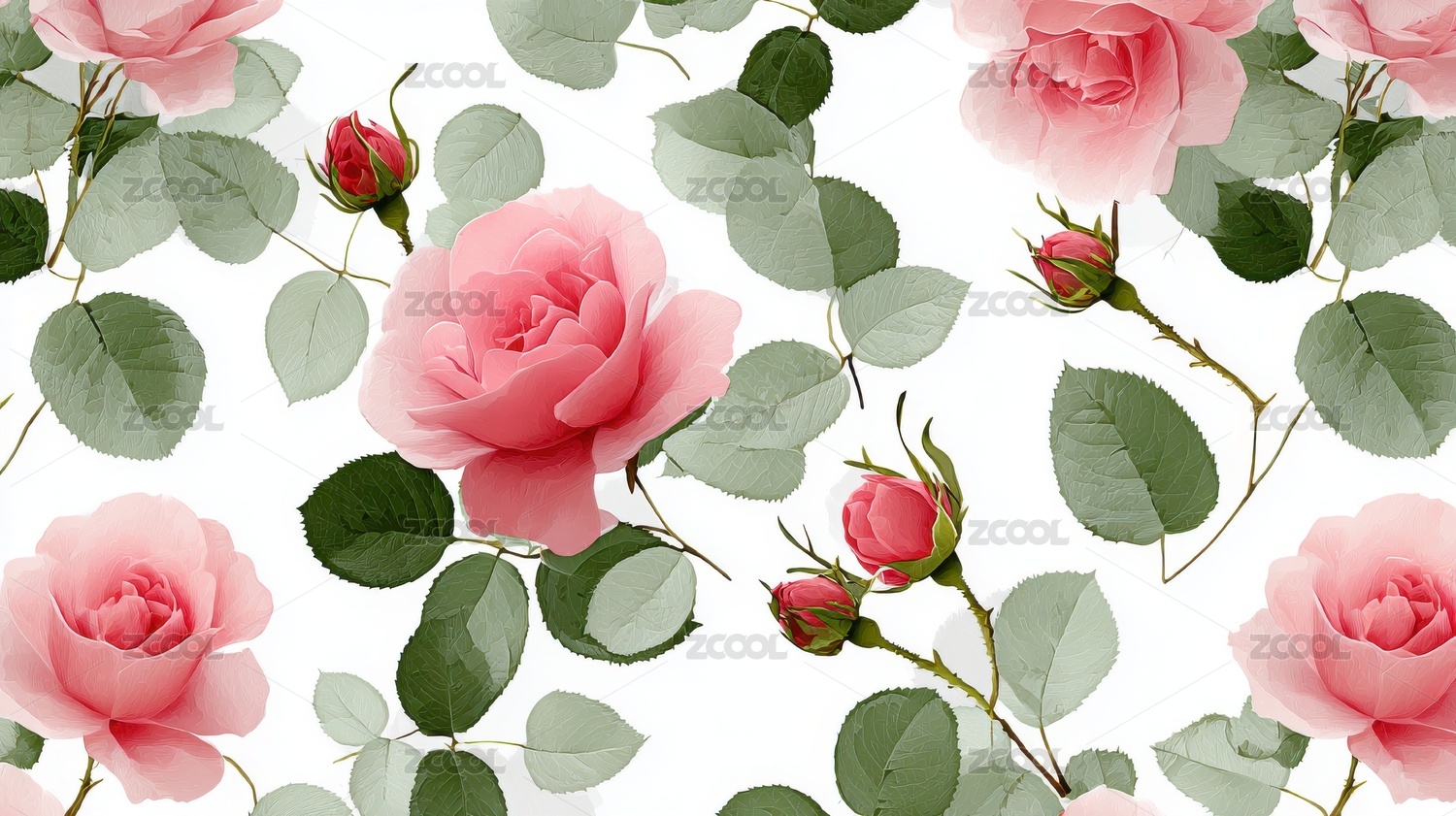 花卉, 图案, 装饰, 背景, 浪漫, 粉色, 插画,玫瑰, 爱情, 绿叶
