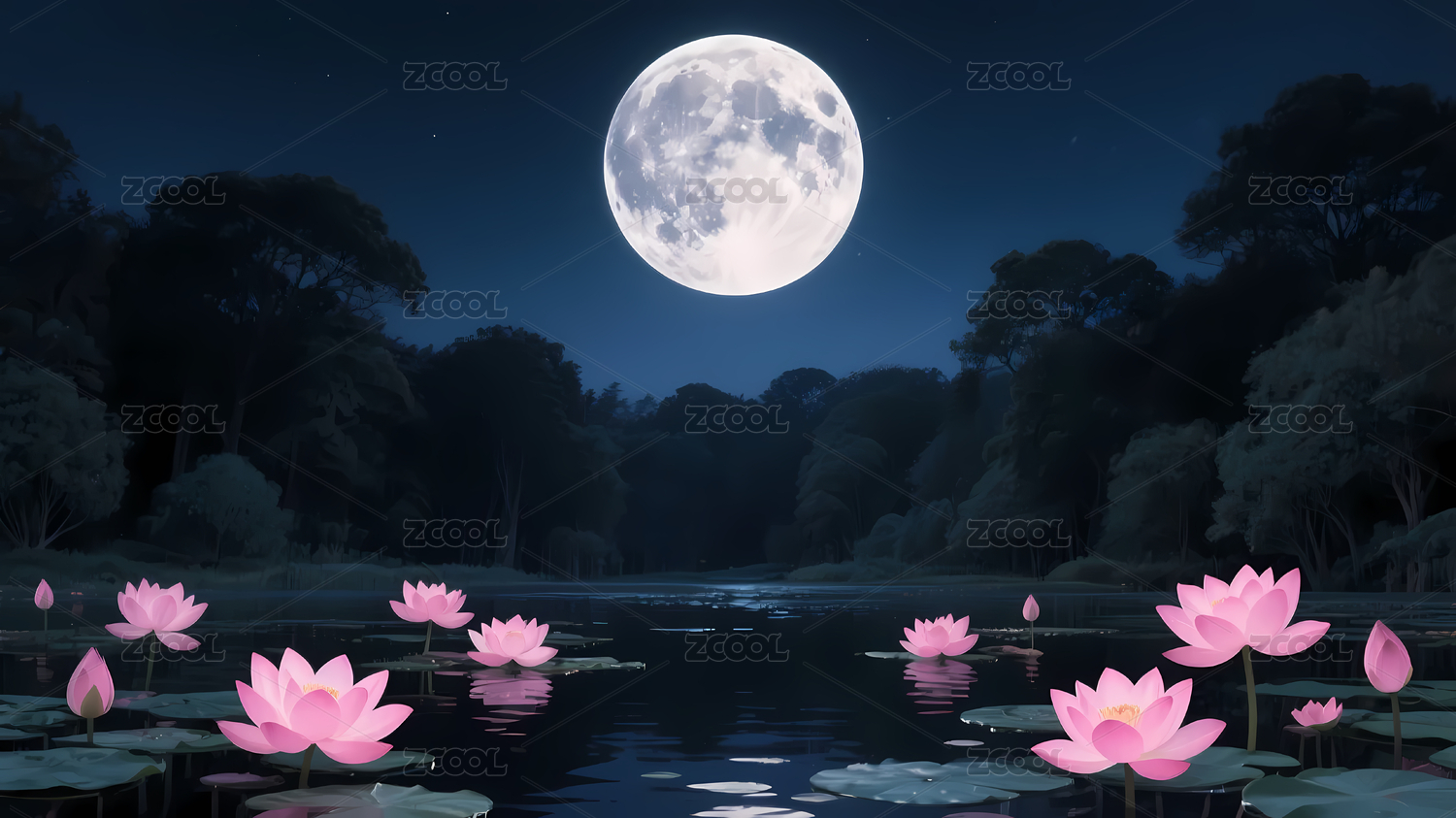 静谧月夜池塘