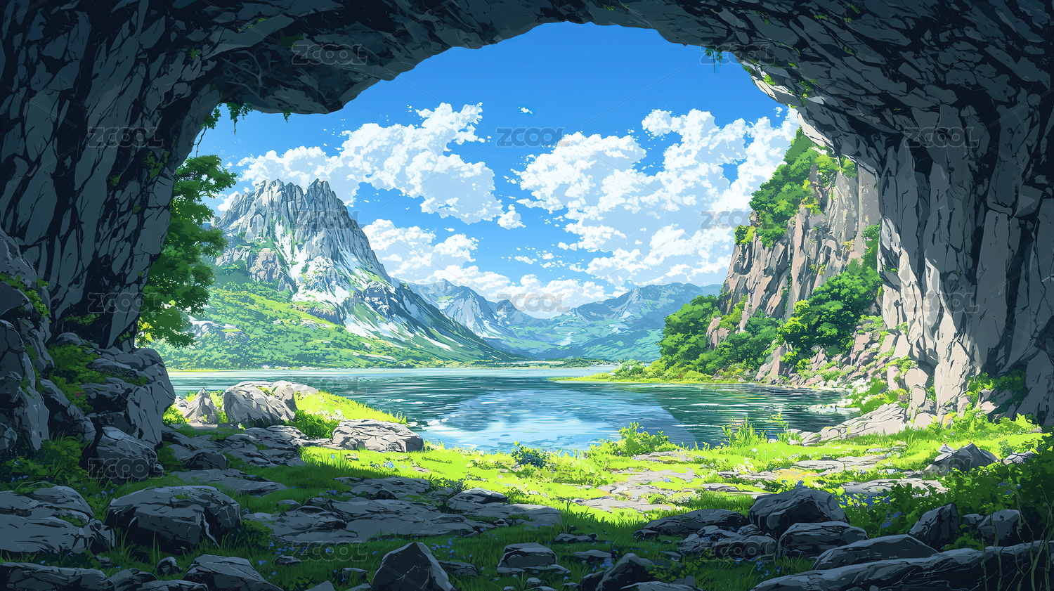 自然,碧波,清新,光影,唯美,意境,写实,清澈,绘画,治愈