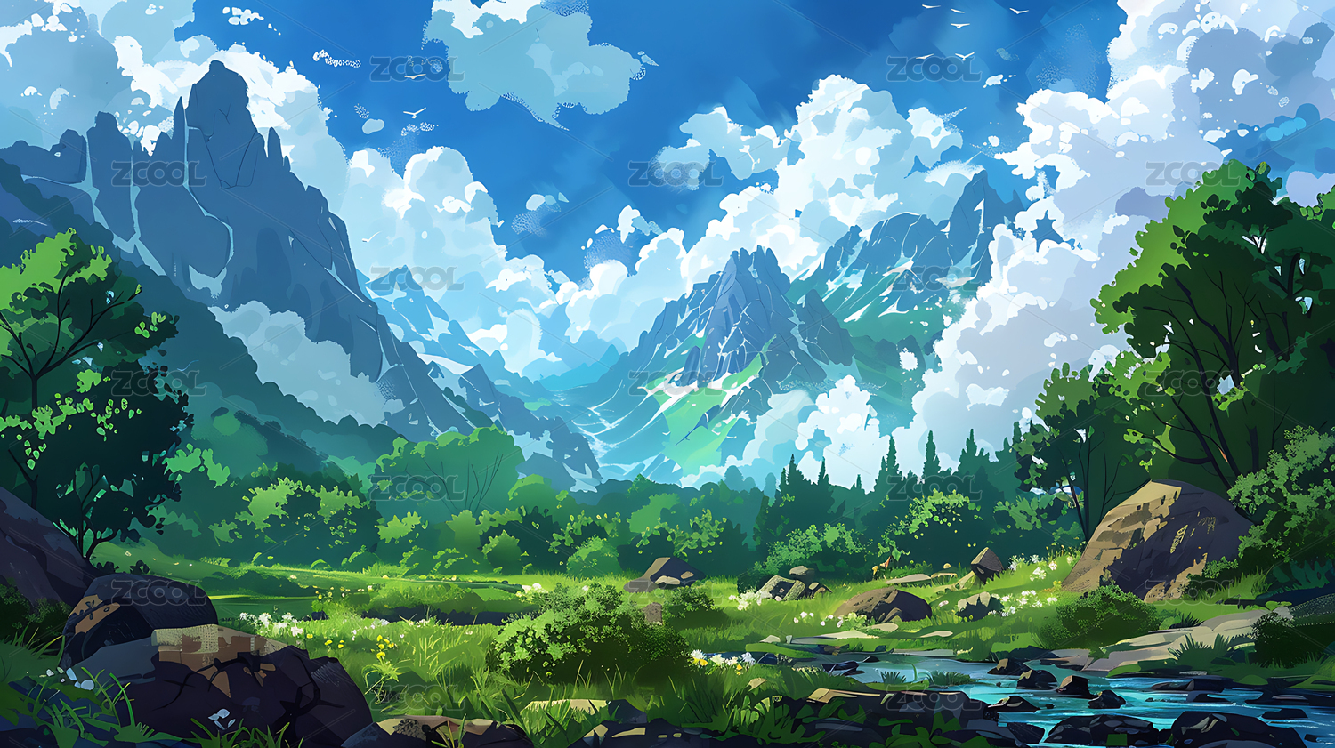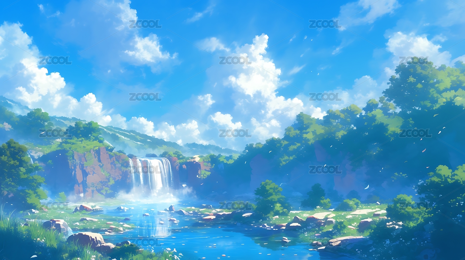 自然,流水,清新,唯美,山水,意境,写实,绘画,细腻,艺术