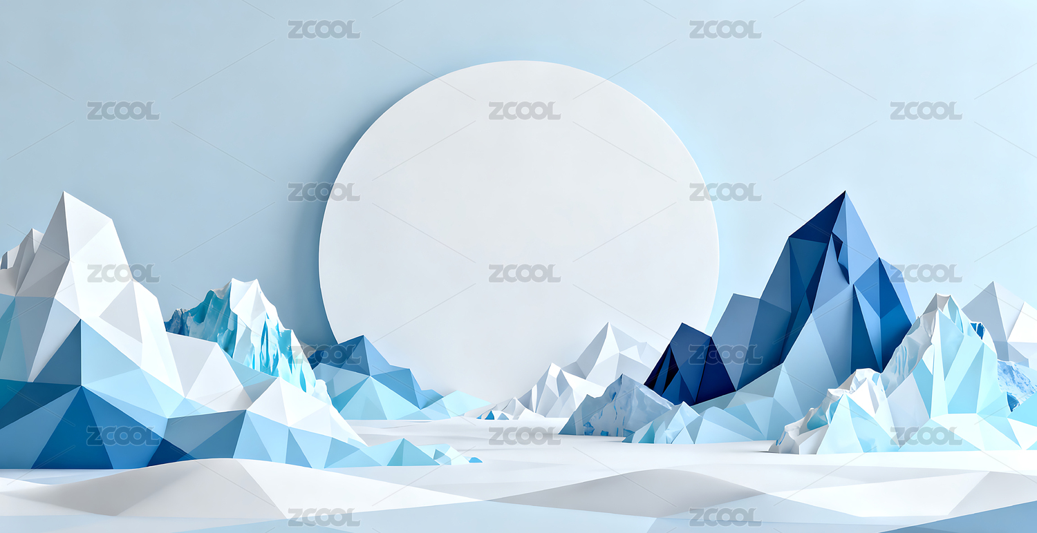 冬天3D抽象雪山冰川电商背景