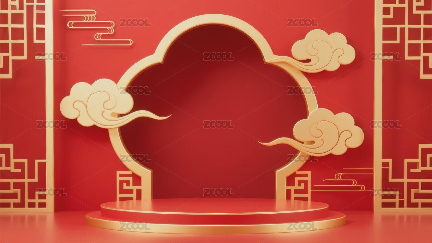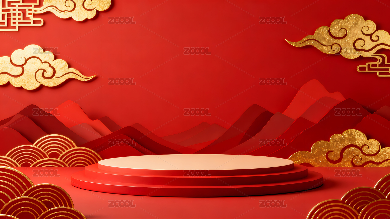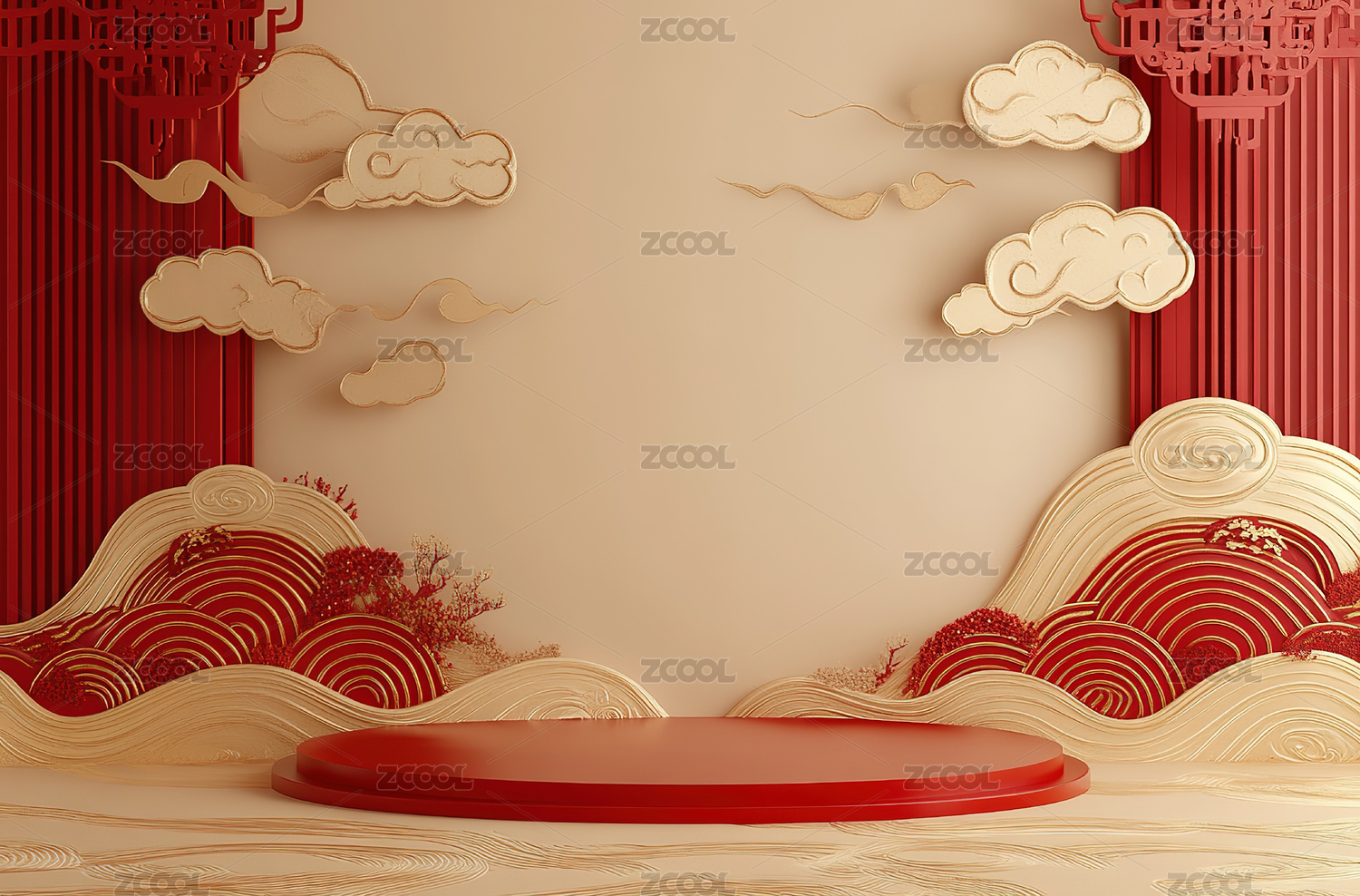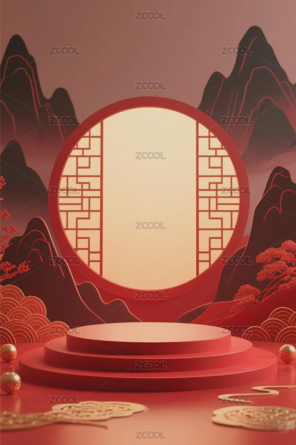 背景,3D,电商,新中式,传统,国风,山水,底座,展台