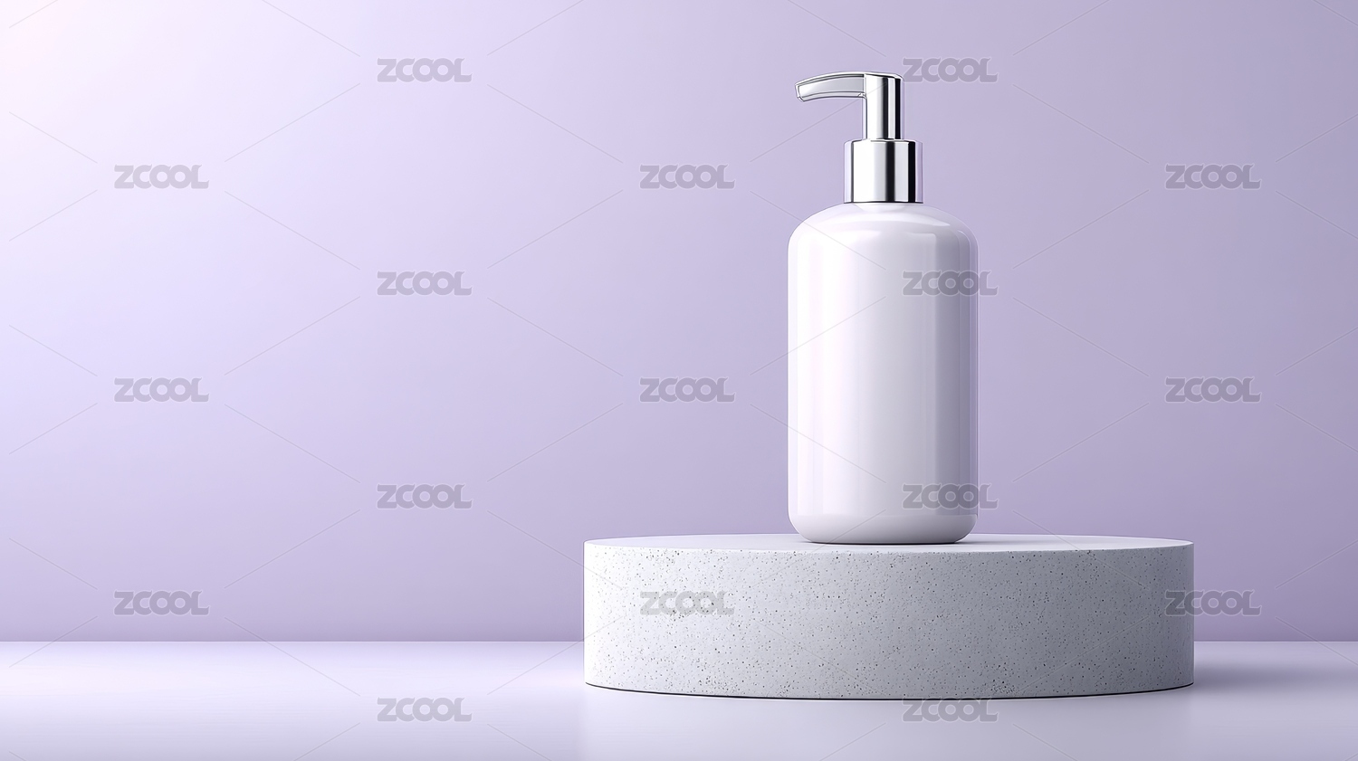 一个带有白色盖子和白色泵蓝色瓶子特写图片