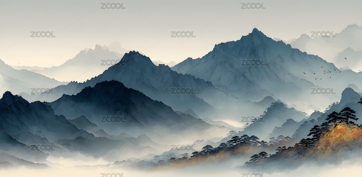 艺术,意境,水墨,山景,云雾,风景,绘画,写意,墨色,静谧